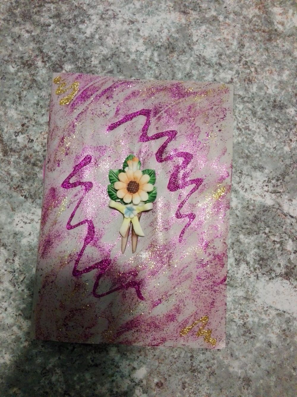 Descrizione:hand made con fiore in ceramicae fogli bianchi all'interno,copertina semirigida misure 21x15