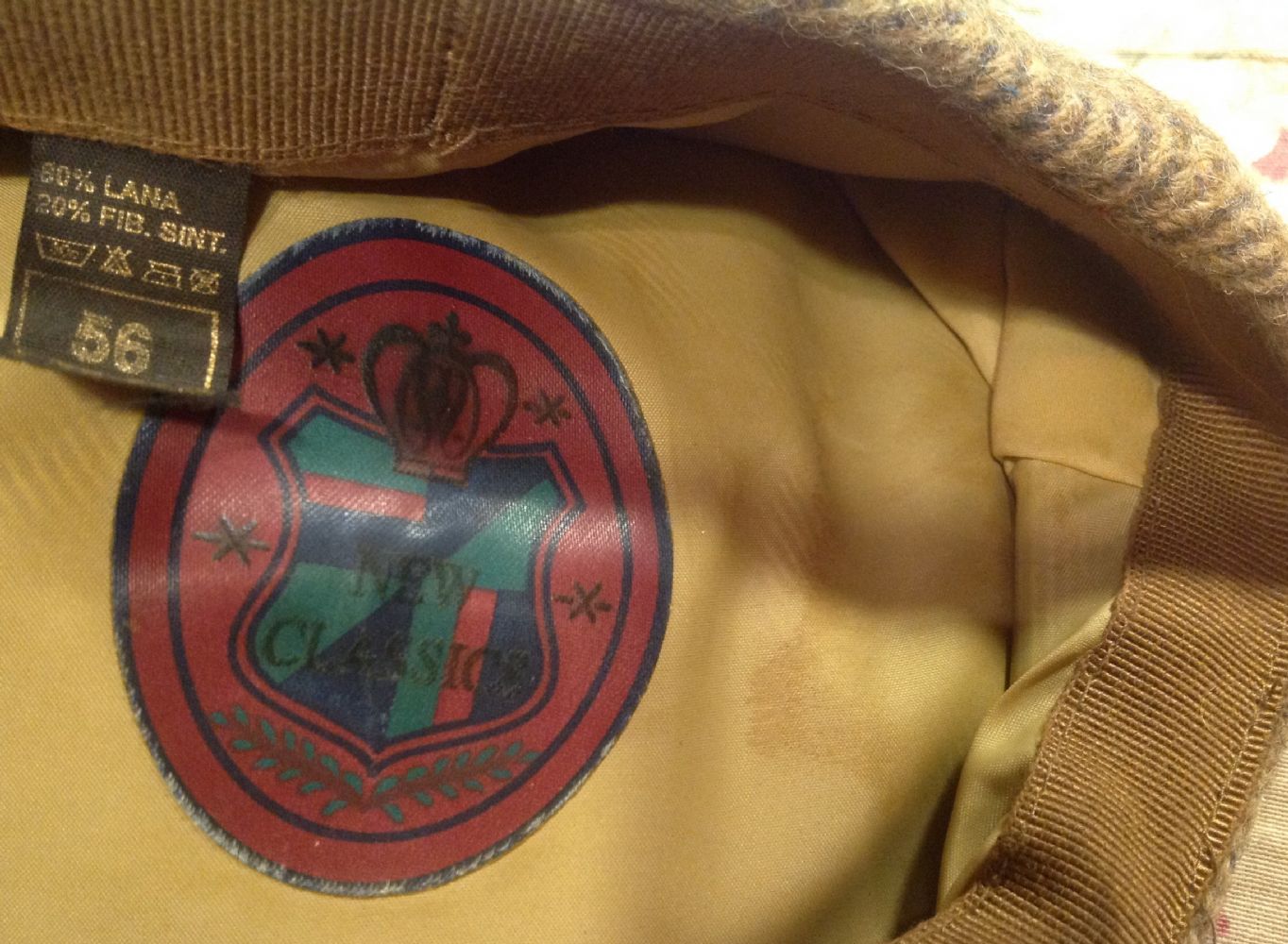Made in Italy, New Classics, 80% lana 20% fibre sintetiche, in perfetto stato a parte la fodera interna macchiata come da foto 3-5 (ma non viene lavata da tanti anni, penso che andrà via, se non del tutto, almeno in massima parte). Non è un signor cappello come un Borsalino, ma un signorino cappello sì.