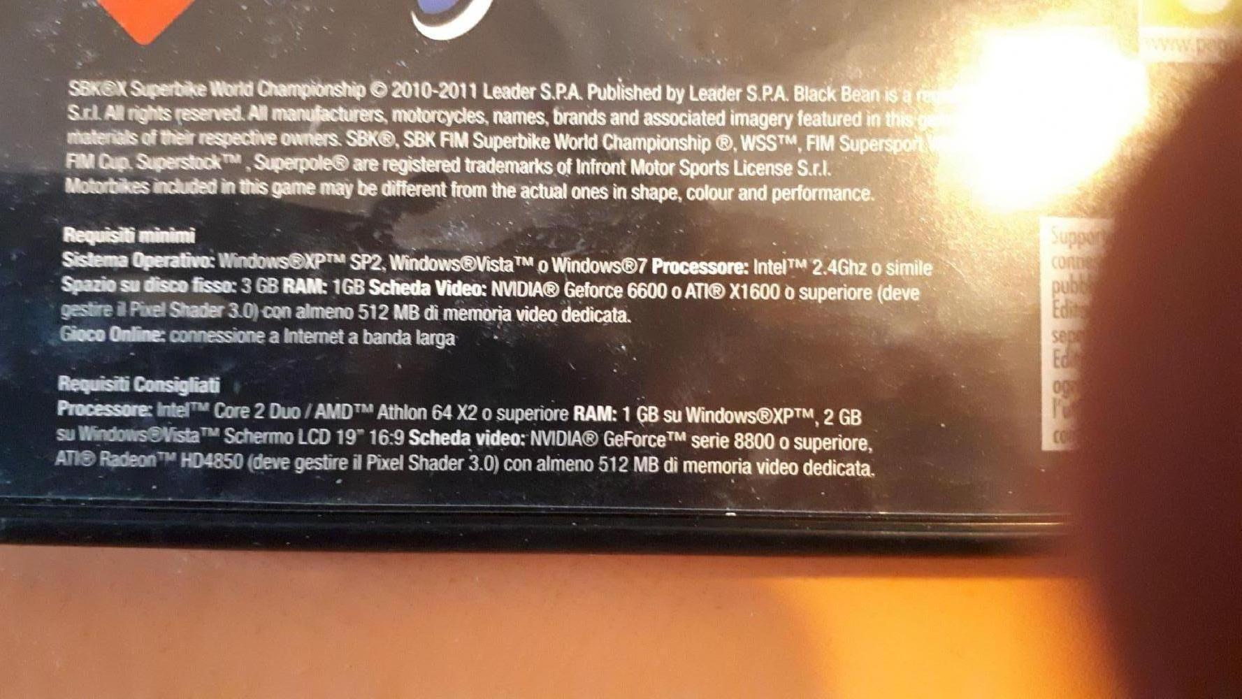 Gioco per PC superbike SBK x.. Il gioco è nuovo e contiene un secondo cd con demo di altri giochi