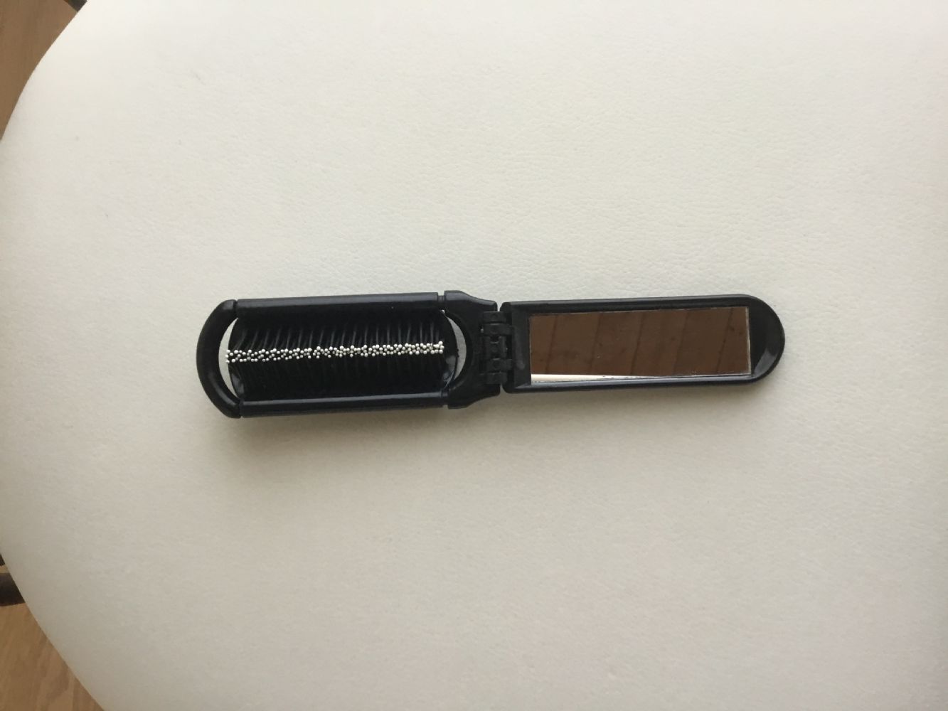 Descrizione:Spazzola per capelli nera, richiudibile per metterla in borsa, con specchio interno. Da aperta 19,5x4.