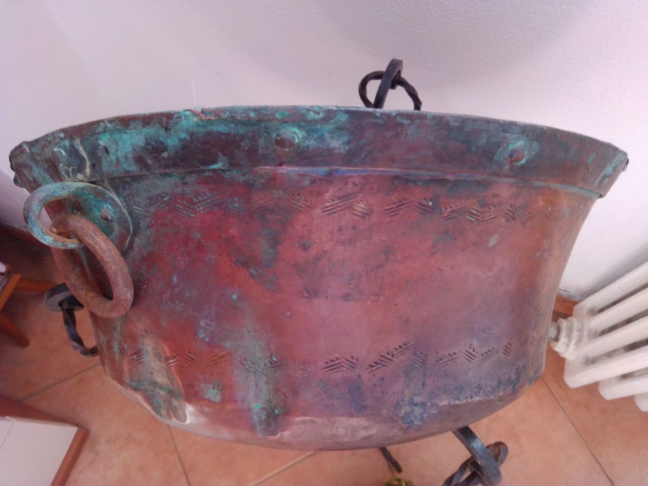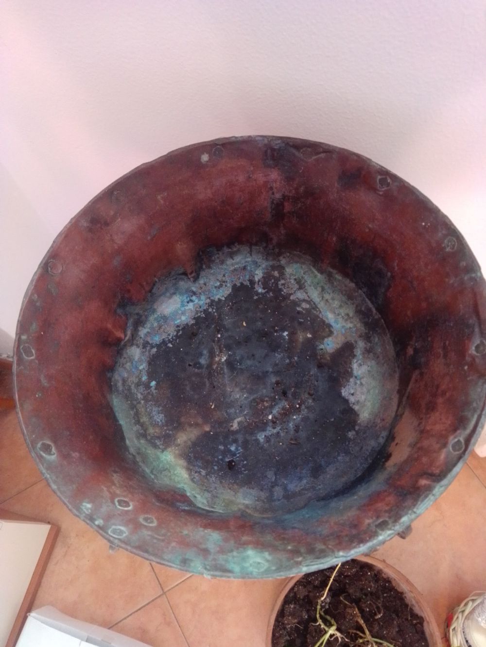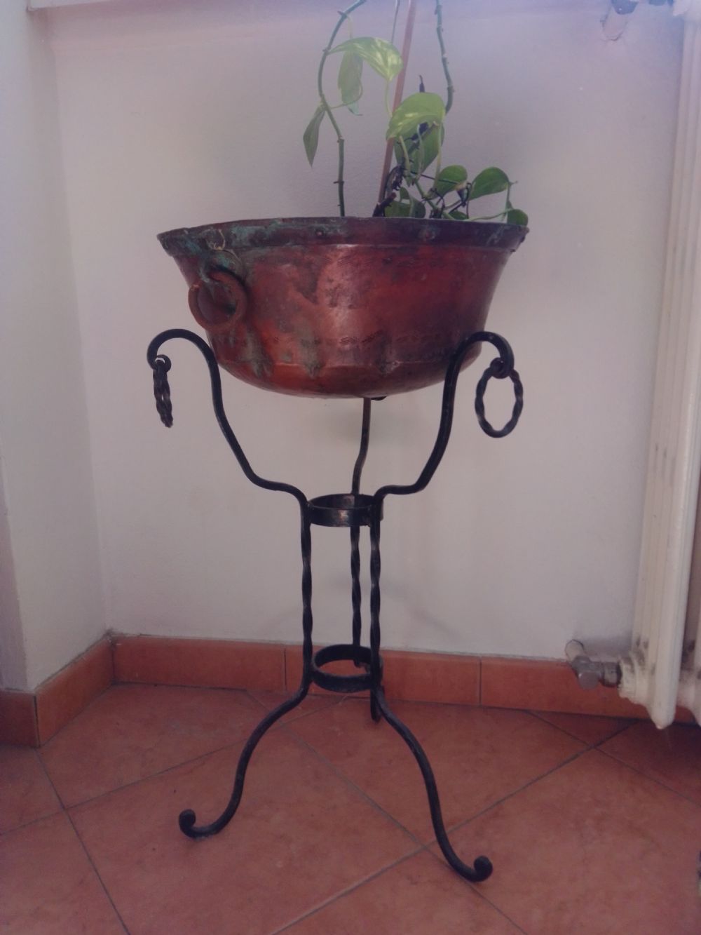 Base in ferro battuto con contenitore in rame, da pulire fuori e dentro...