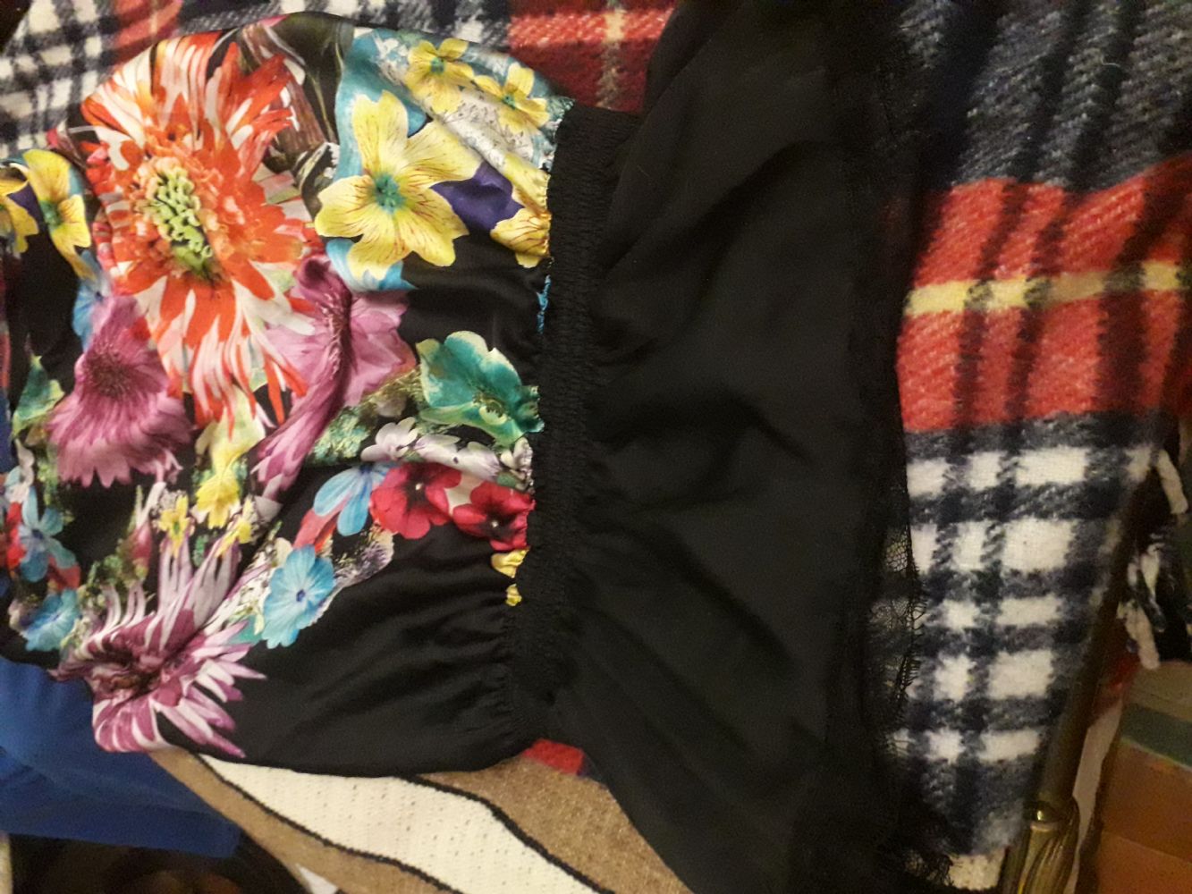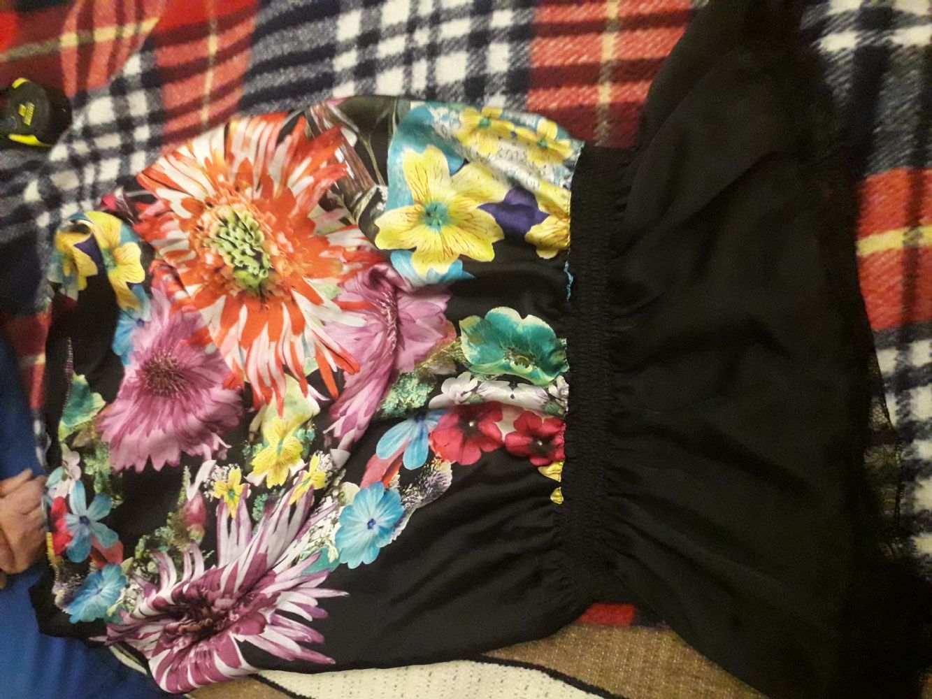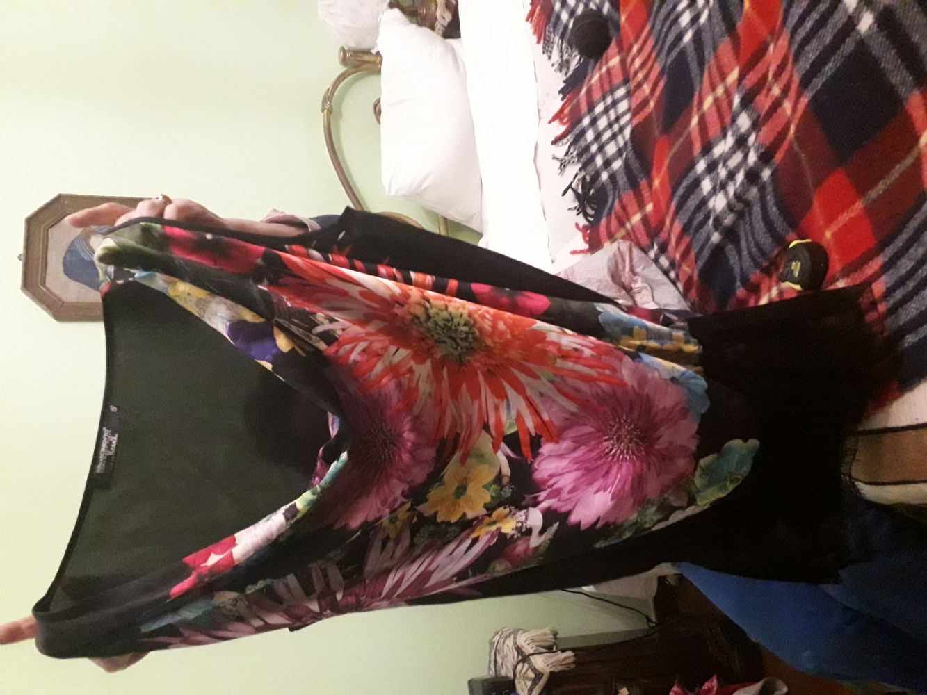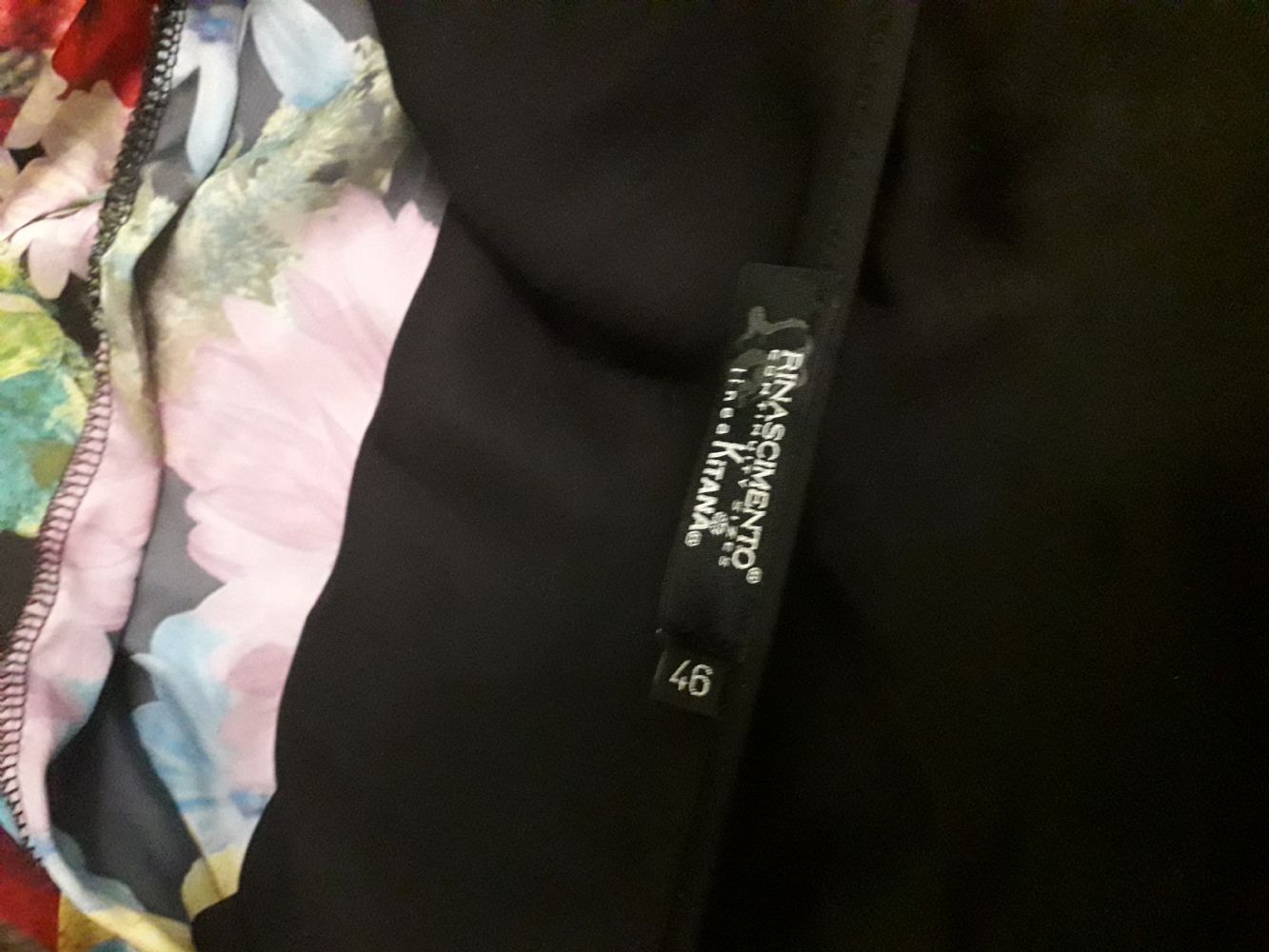 Tg 46. Tenuta bene. Tagliata l' etichetta ma sembra seta. Molto belli i fiori