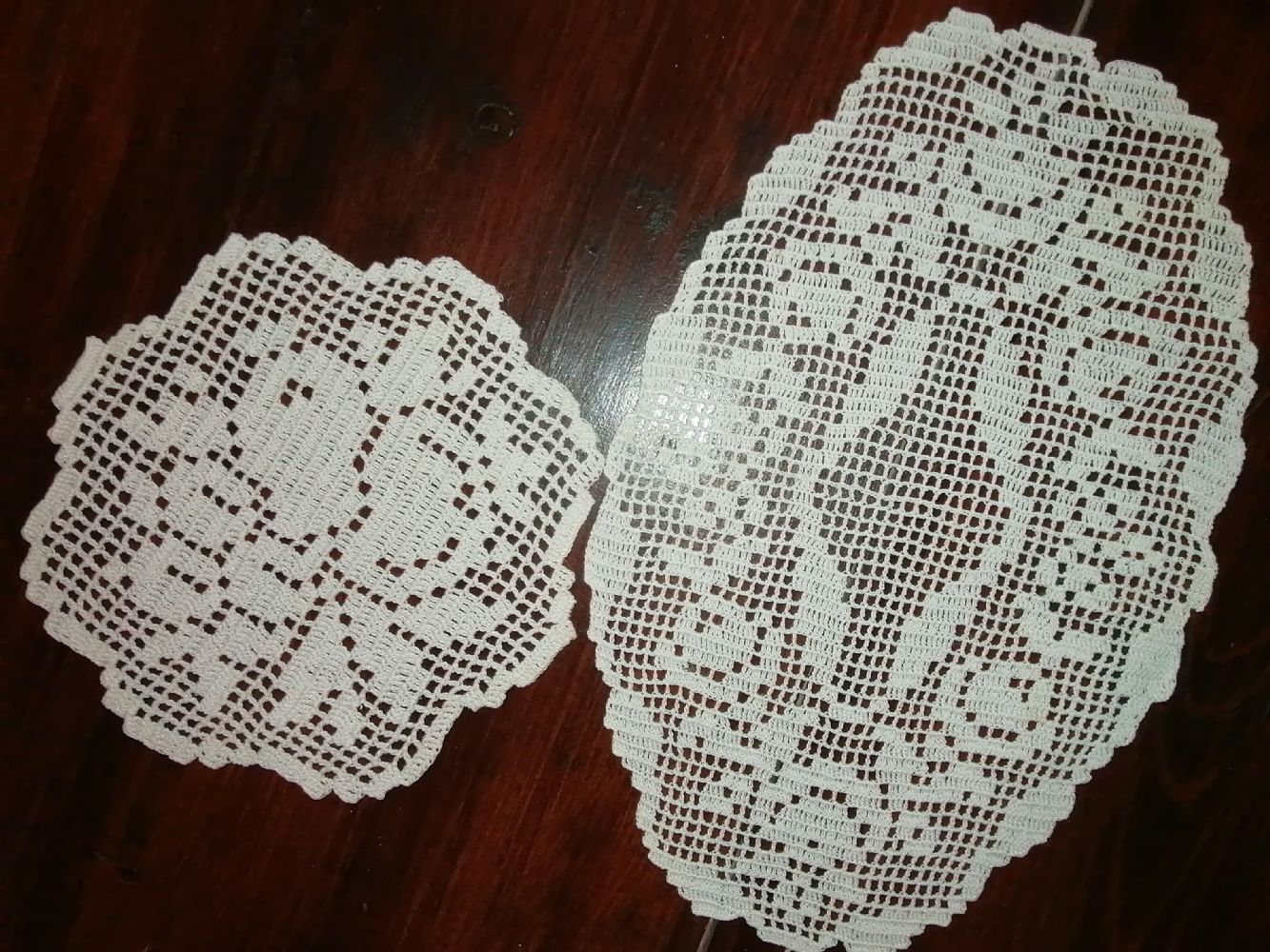 Descrizione:Centri Ovale (Mis. Indicative 29x19) o Tondo (Mis. Indicative cm 18 di diametro). Lavorazione Uncinetto
