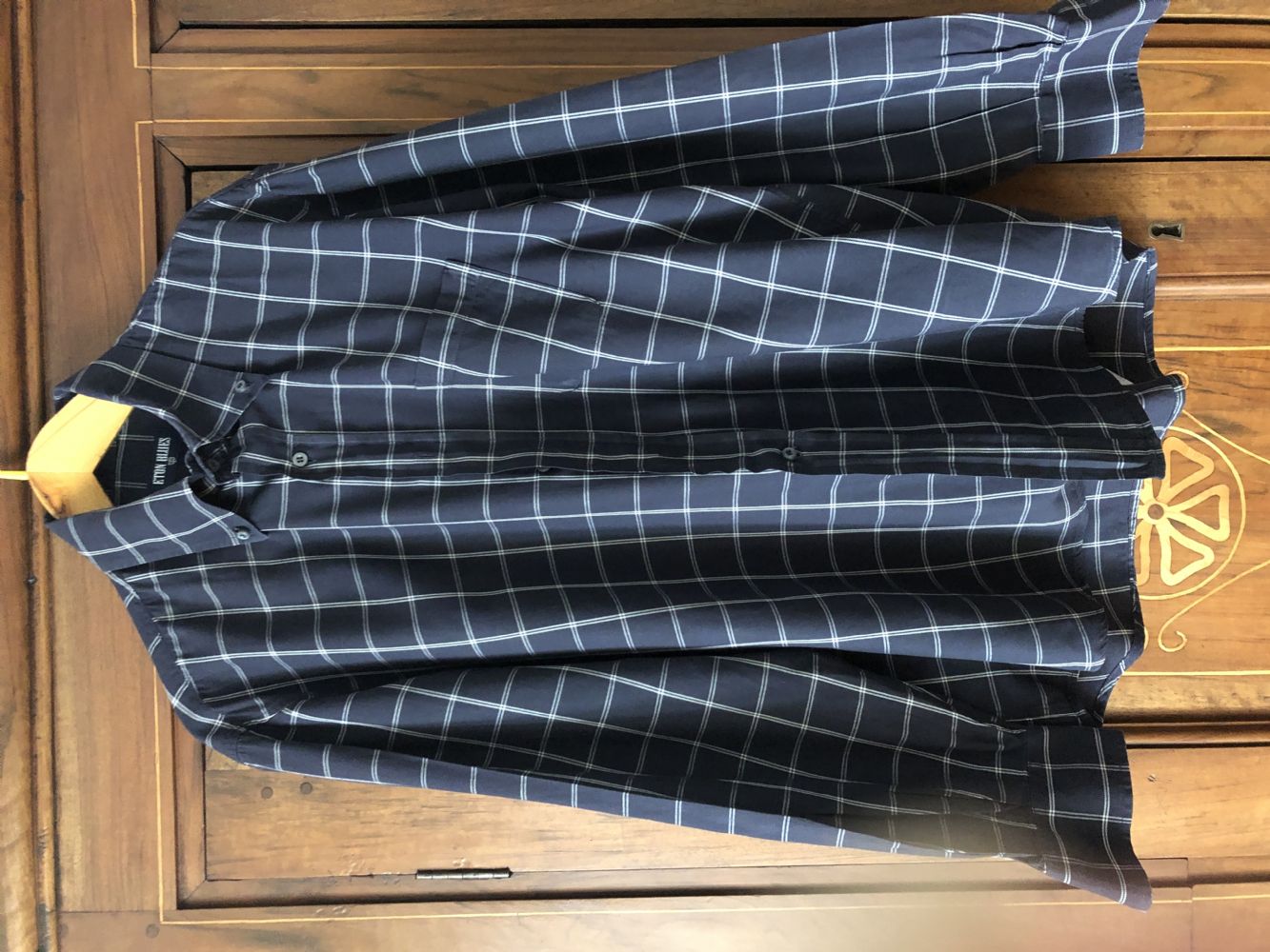 Camicia uomo blu con righe bianche
