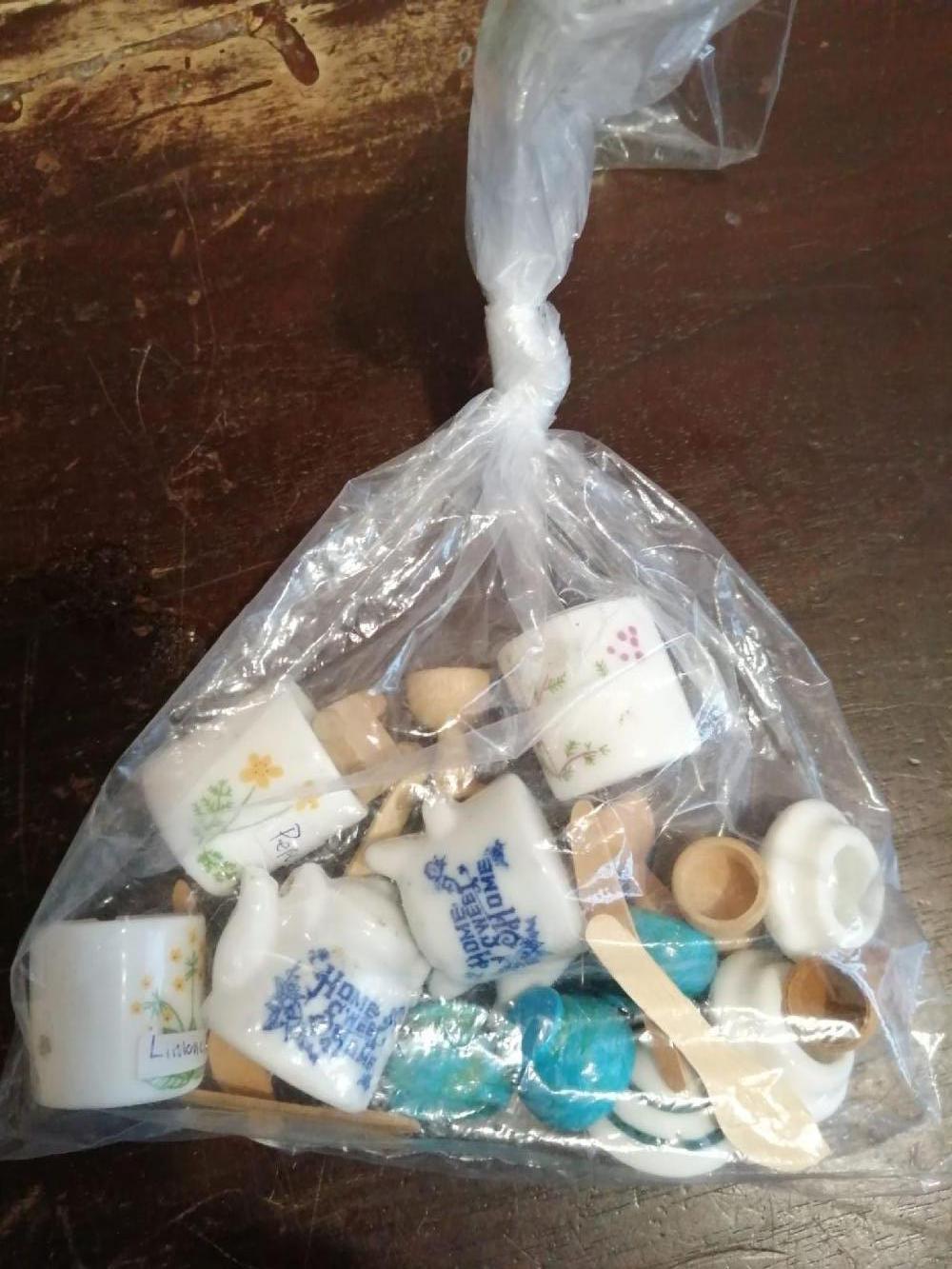 Descrizione:Stoviglie per casa di bambola, alcune in ceramica altre in legno . Buone condizioni