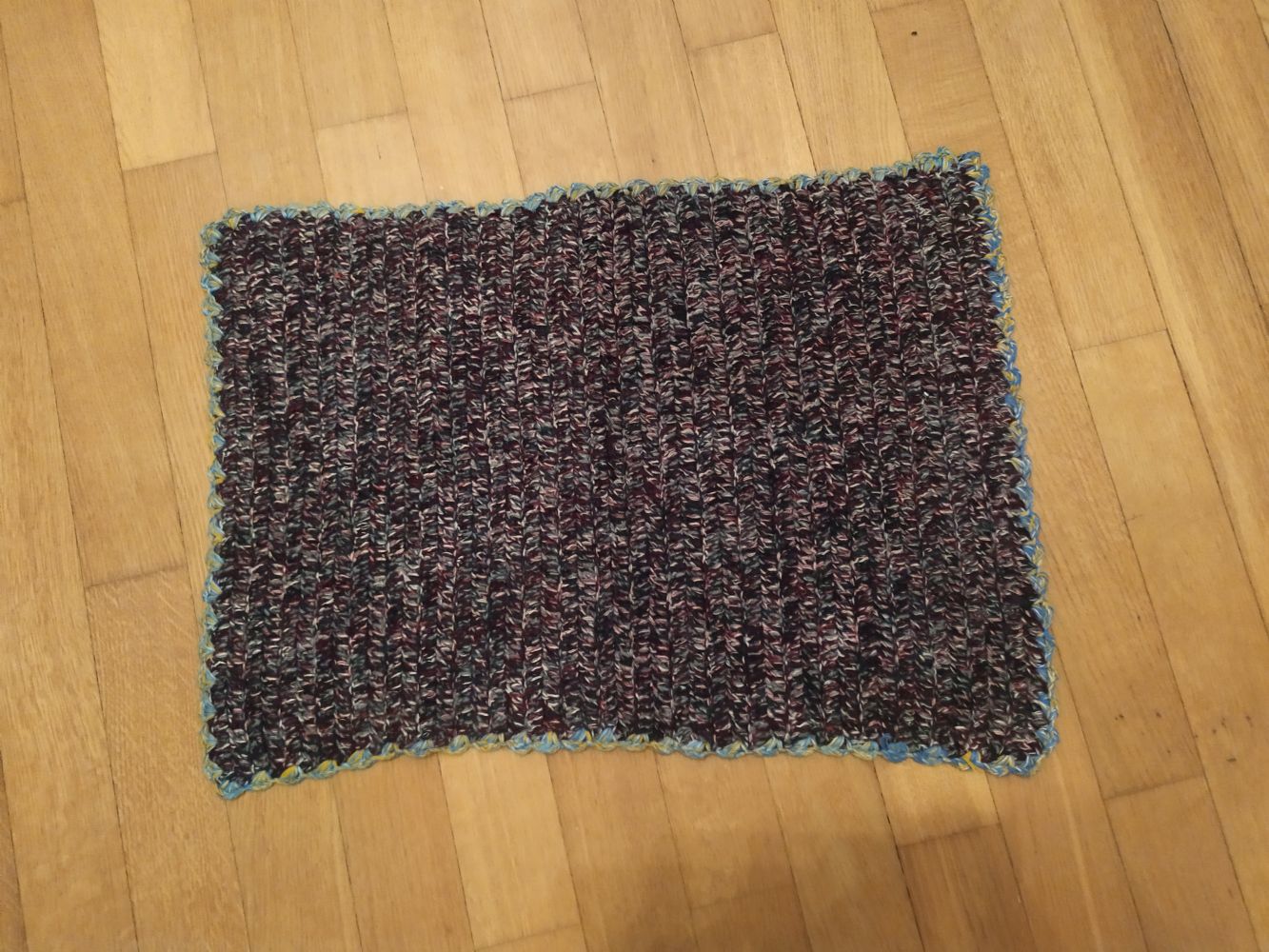 Descrizione:Fatto ai ferri dalla zia di mio marito e usato per avvolgere i vasetti di marmellata durante il trasporto, non l'ha rivoluto indietro e a me non serve, se va bene per i tuoi mici te lo regalo! Sarà 40x60 circa
