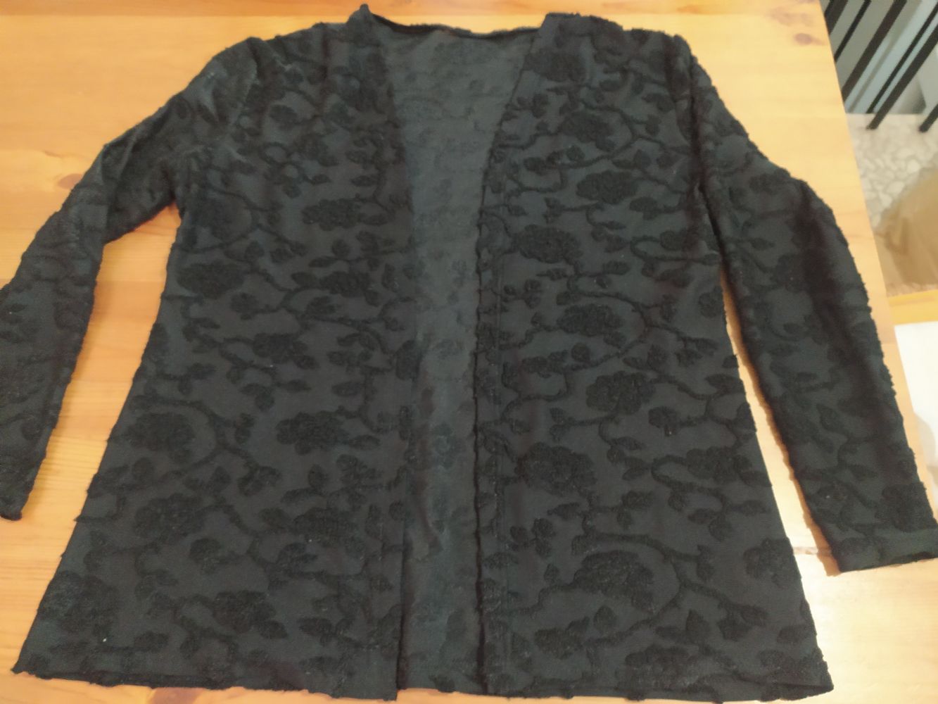Descrizione:Completo gemelli nero tg XL ricamo tipo ciniglia, 100% poliestere, cardigan spalle cm 47, ascelle cm 54, lunghezza cm 67, T-shirt spalle 47, ascelle cm 54, lunghezza cm 67.