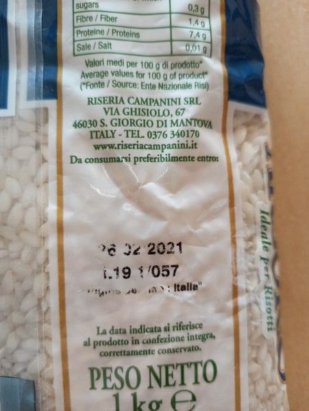Pacco di riso, scaduto a febbraio 2021, ma mai aperto, quindi, secondo me, ancora utilizzabile.
