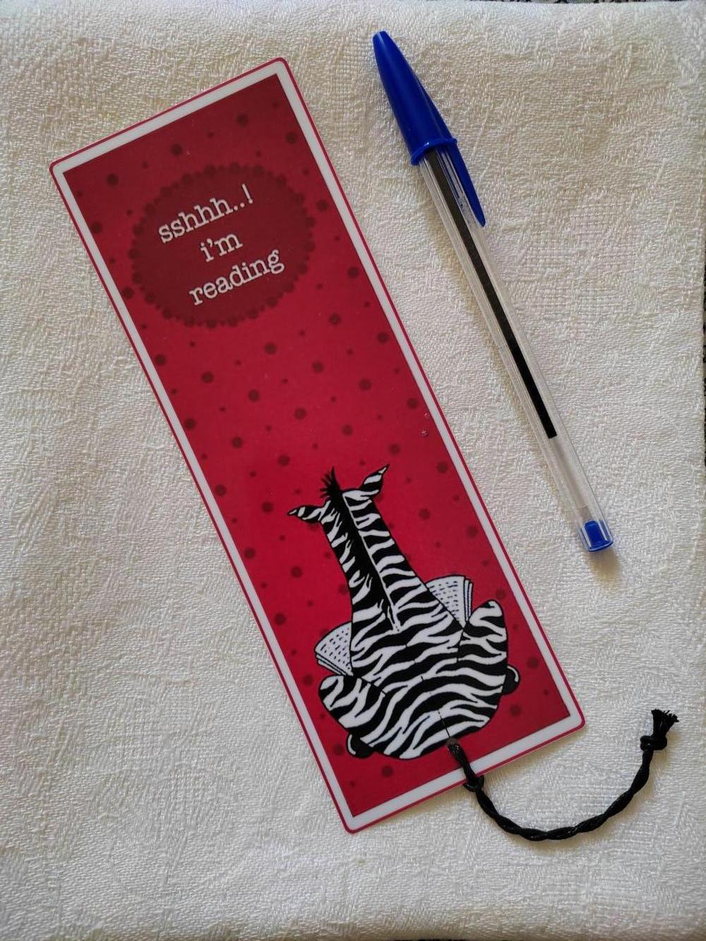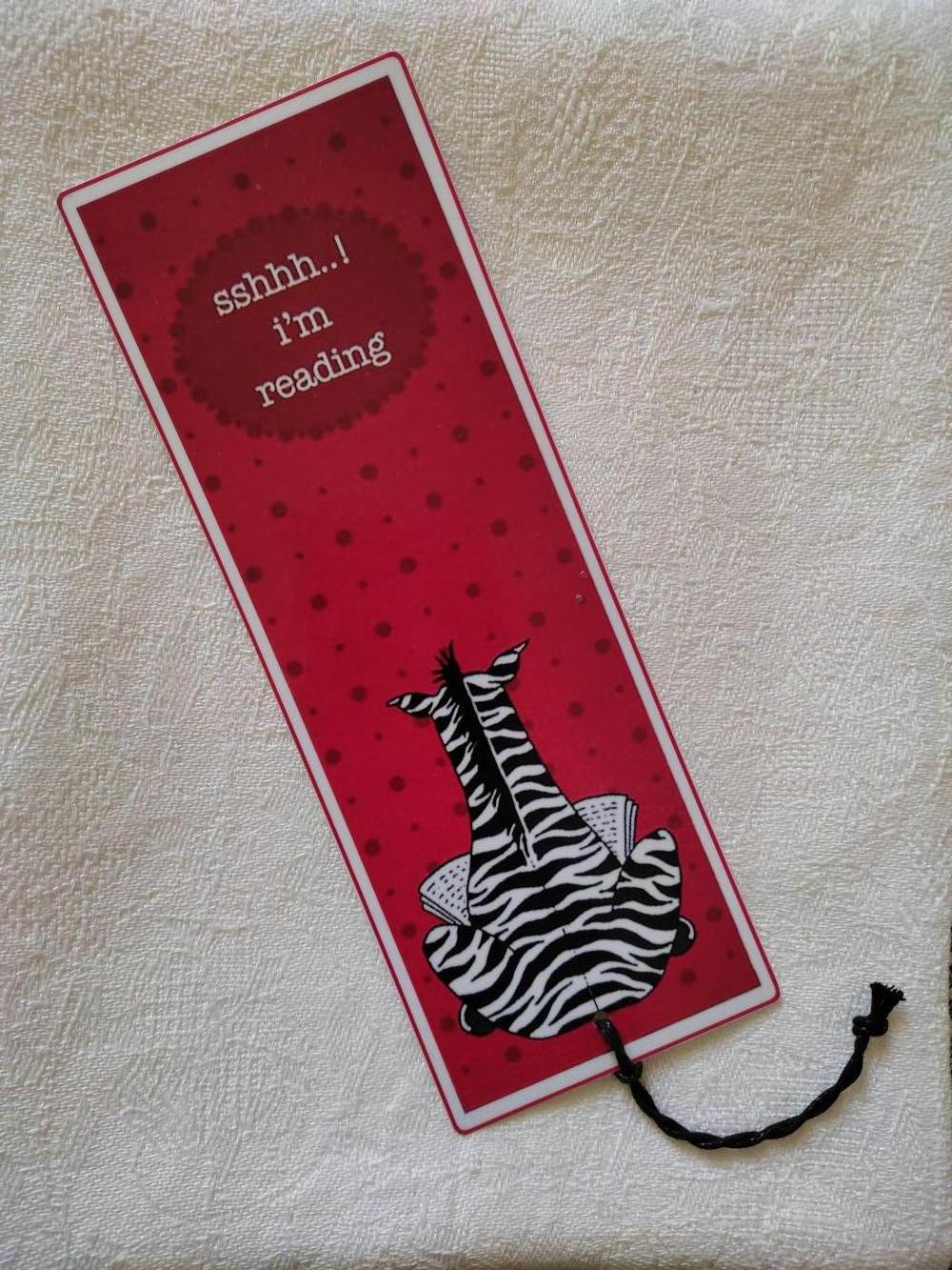 Segnalibro plastificato soggetto Zebra. Nuovo e regalabile.