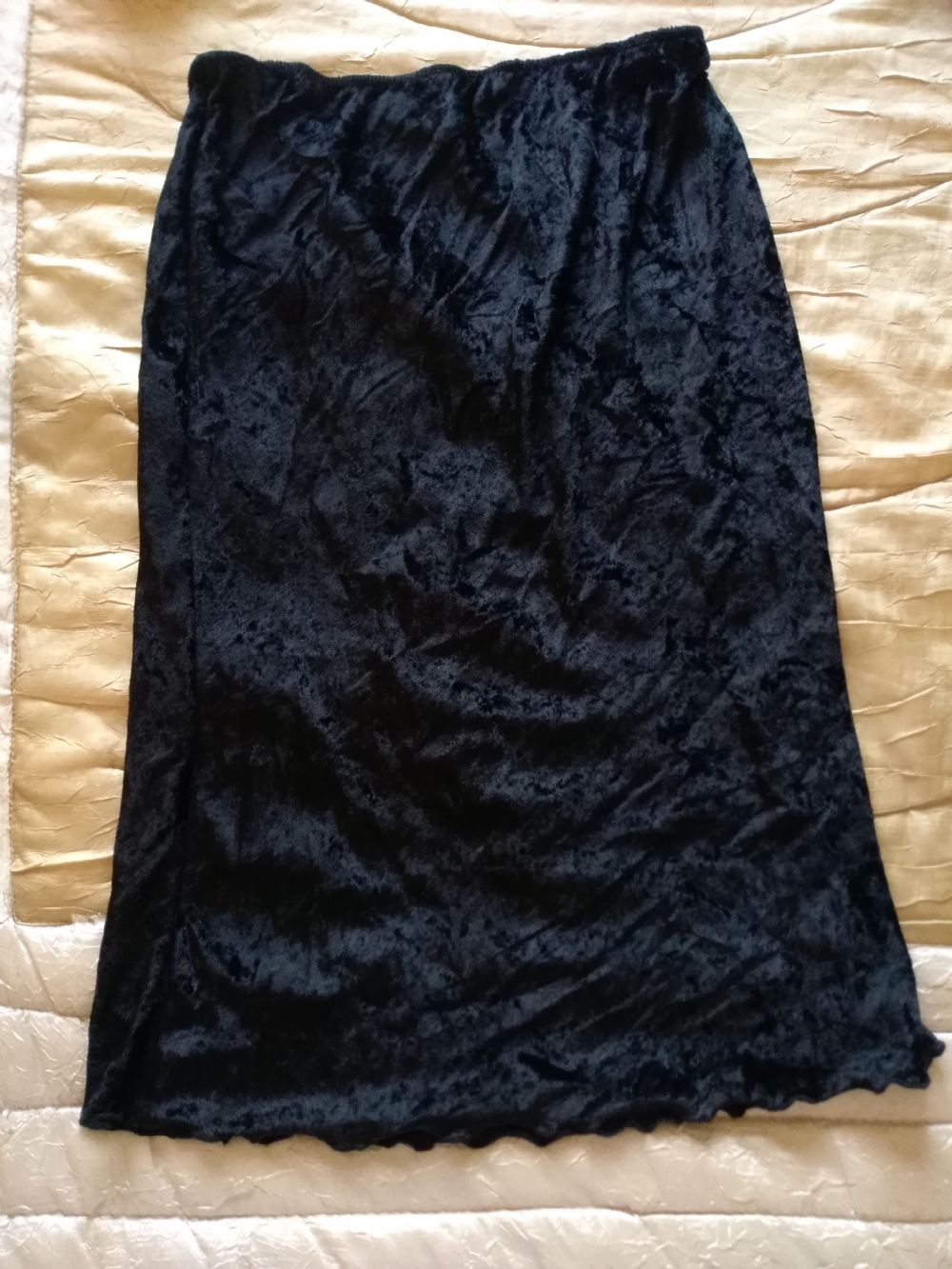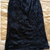 Gonna nera in materiale tipo velluto, molto morbida, lunga più o meno fino alle ginocchia, con elastico in vita. Taglia S, in buone condizioni