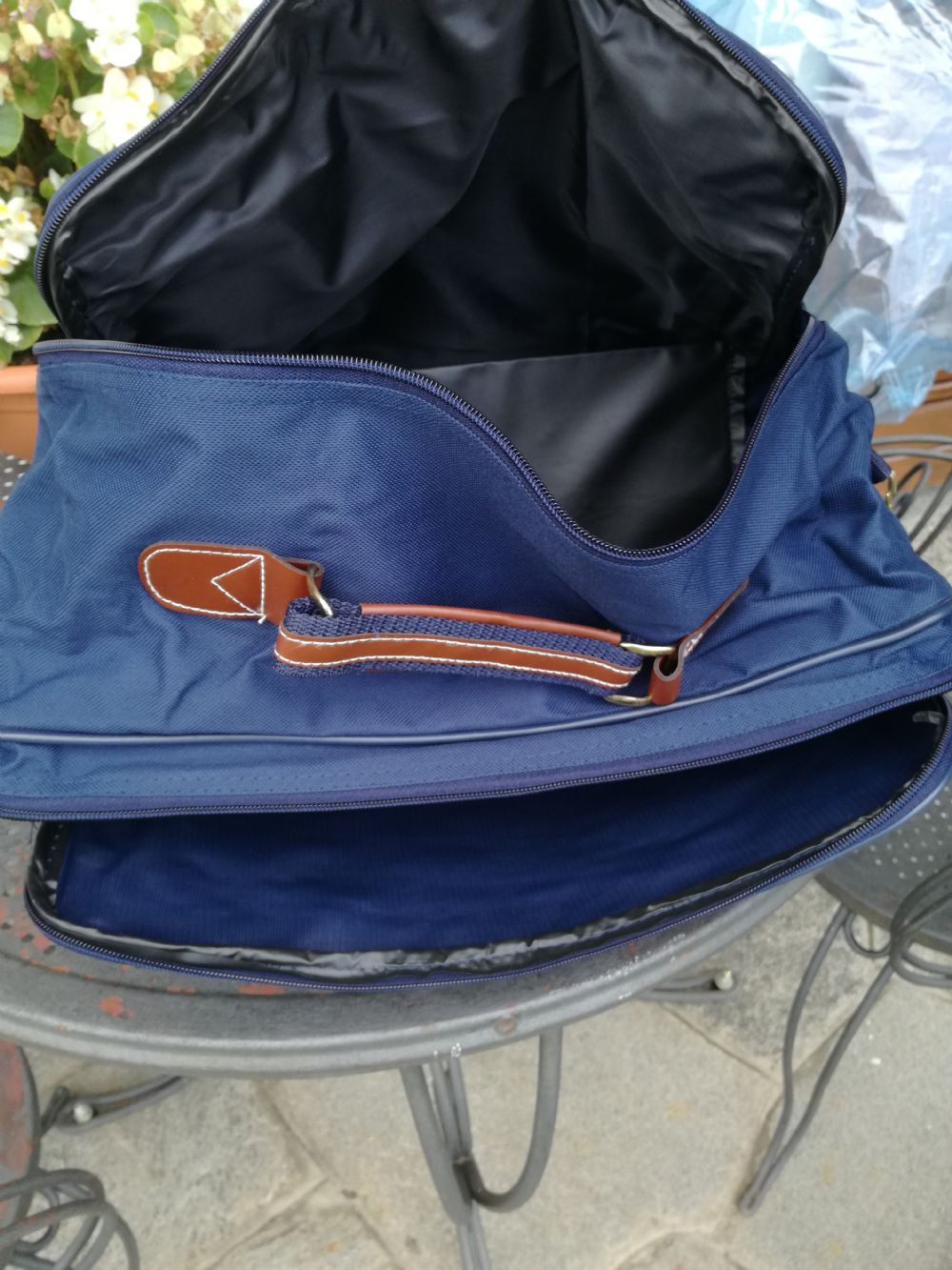 Descrizione:costituita da 2 scomparti, uno per PC e l'altro per i documenti, il soffietto si allarga di ben 15 cm e fa la funzione di valigetta, è completa di tracolla con gomma antiscivolo