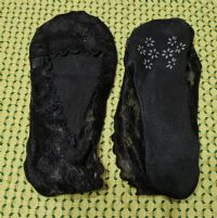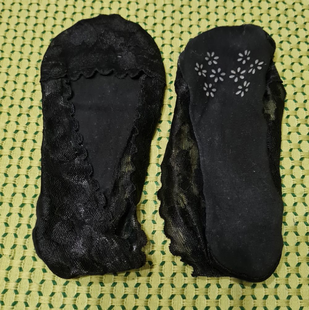 Descrizione:salvapiedi neri ricamati nella parte superiore, con antiscivolo in quella inferiore, taglia 38-40