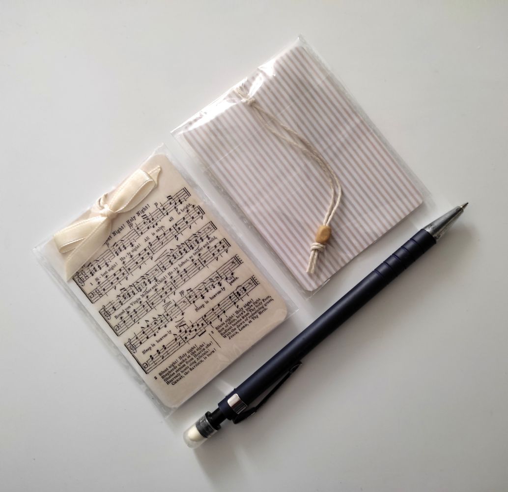 L'immagine a tema natalizio è questa che vedi:):):) uno spartito musicale vintage con le note di una delle più conosciute canzoni natalizie: Silent Night (la nostra versione italiana è "Astro del ciel"), l'avevo scelta perché io personalmente non amo i regali a spot che passato l'evento vengono accantonati, ma se tu preferisci le immagini tradizionali di babbo natale e gnomi nessun problema provo a cercare qualcosa e poi ti aggiorno!