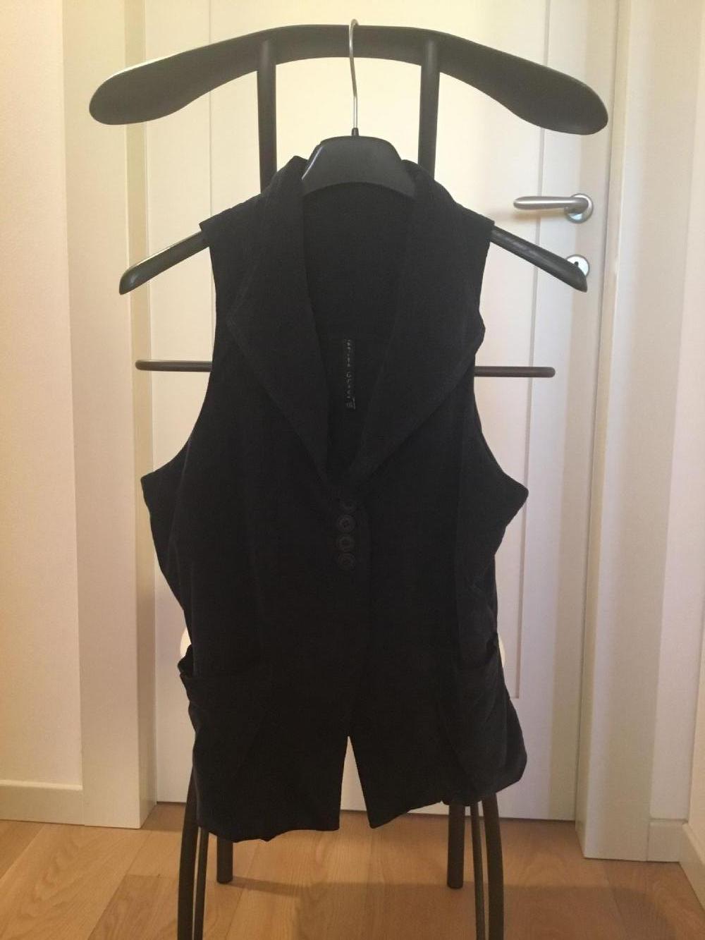 Descrizione:Gilet in velluto blu scuro a coste fini fini, 2 tasche, marca Manila Grace, indicata tg XXL, ma io direi M o L, comunque metto misure: spalla-spalla 28, ascella-ascella 45, lunghezza max 57. Composizione: 97% cotone, 3 elastane, fodera con logo 100% viscosa.