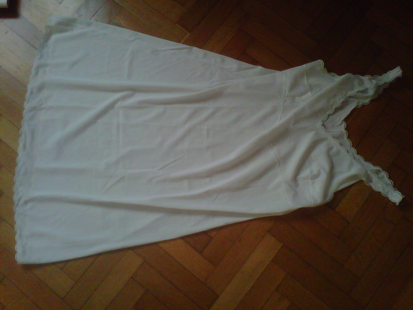 Descrizione:sottoveste bianco, misura da spallina a bordo inferiore 1 m, larghezza al seno 105 cm, credo taglia 48