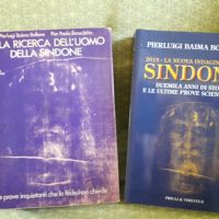 Descrizione:Alla ricerca dell'uomo della Sindone (Mondadori 1978); 2015 La nuova indagine sulla Sindone (Priuli&Verlucca 2015). Pierluigi Baima Bollone (link Treccani allegato) ha davvero dedicato parte della sua esistenza all'indagine di questo fenomeno culturale. Leggendo questi due libri (tenuti molto bene) si ha una duplice sensazione: da un lato si rimane coinvolti in un'indagine molto più scientifica di quanto si pensi, dall'altro si assiste all'evolversi di una vera e propria ossessione. Credo che le persone come Bollone siano fatalmente attratte da uno spirito di ricerca che travalica gli argomenti investigati. In questo caso, essendo l'oggetto in esame comunque affascinante, è piacevole seguire l'autore nella sua dettagliatissima disamina. (PS. Nelle foto le copertine sembrano sciupate ma NON lo sono per due motivi: 1) riprendono una scansione della Sindone; 2) il mio telefono è più consunto della Sindone.