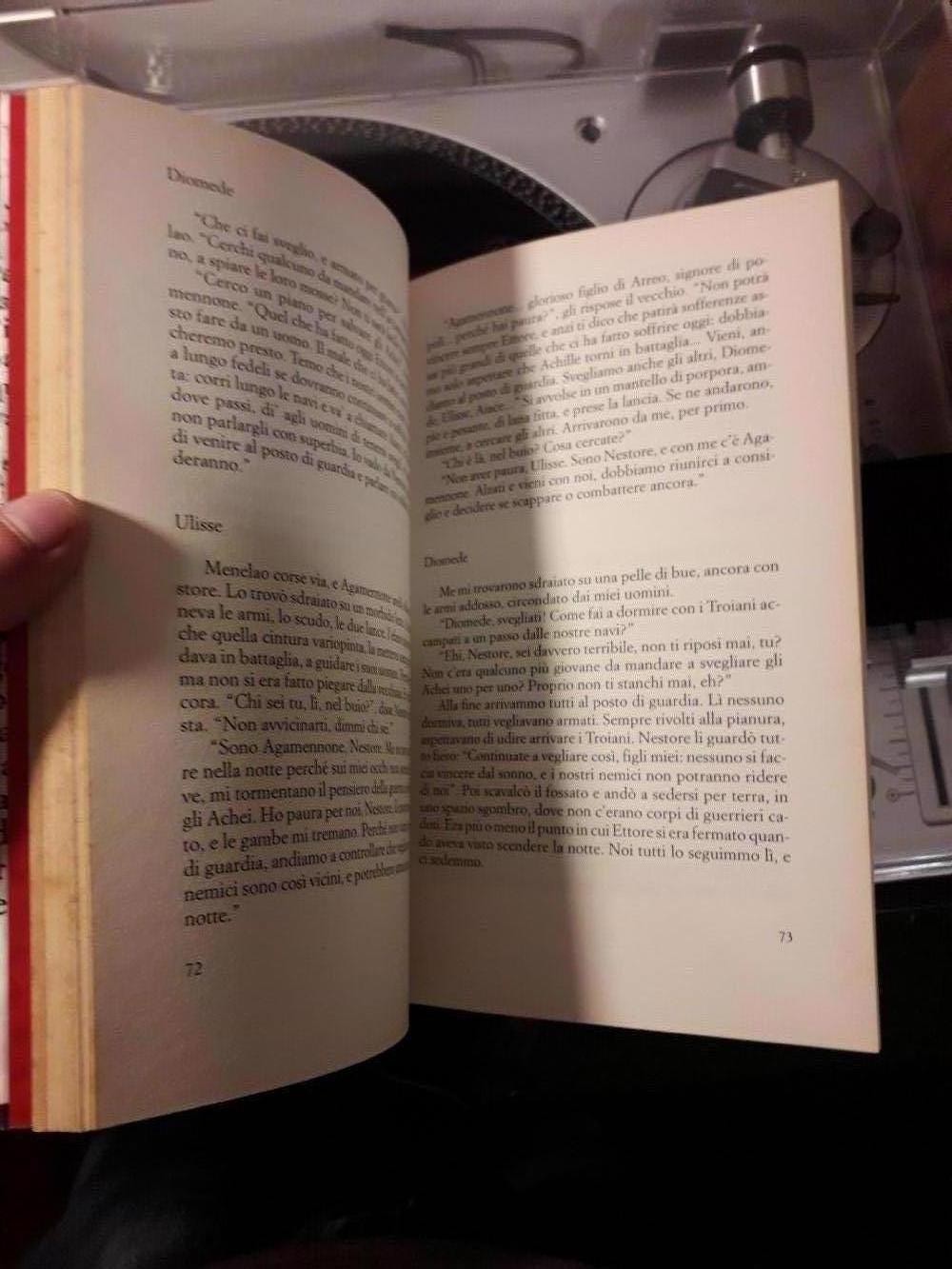Descrizione:Verso i 16/17 anni sognavo di frequentare la scuola Holden di Baricco. Avevo letto solo un mezzo libricino dello scrittore torinese, non lo avevo amato, ma invece adoravo il tono pacato e narrativo dei suoi interventi e delle sue trasmissioni in televisione. Certamente c'era del mestiere, dello studio, in ciò che faceva, e un indubbio talento retorico. Crescendo (in altezza, e neanche tanto) mi stancò. Adesso che "cammino, bello, trentaquattrenne!" (semi-cit.) ci ho fatto la pace, ho deciso per entrambi che lui continuerà a fare le sue cose ed io a disfare le mie; non mi inalbero più, ad esempio, per questo "Omero, Iliade", versione riadattata in prosa del poema omerico, proposta con una smussatura degli arcaismi, perché risulti più diretta, e resa più moderna dall'eliminazione del contrappunto divino. Proprio io che adoro i termini vetusti, il dover cercare le note per non perdere le sfumature, e che quindi non amo le trasposizioni in prosa dei versi, e che penso che proprio gli dei, fino ad Euripide, riportino tutte le vicende su un piano drammaticamente umano e perciò -sospiro di sollievo- mai in odor di metafisica, proprio io! HO RILETTO questo libro, e dai, non è malaccio. Perché a volte gioca bene anche la squadra avversaria.
