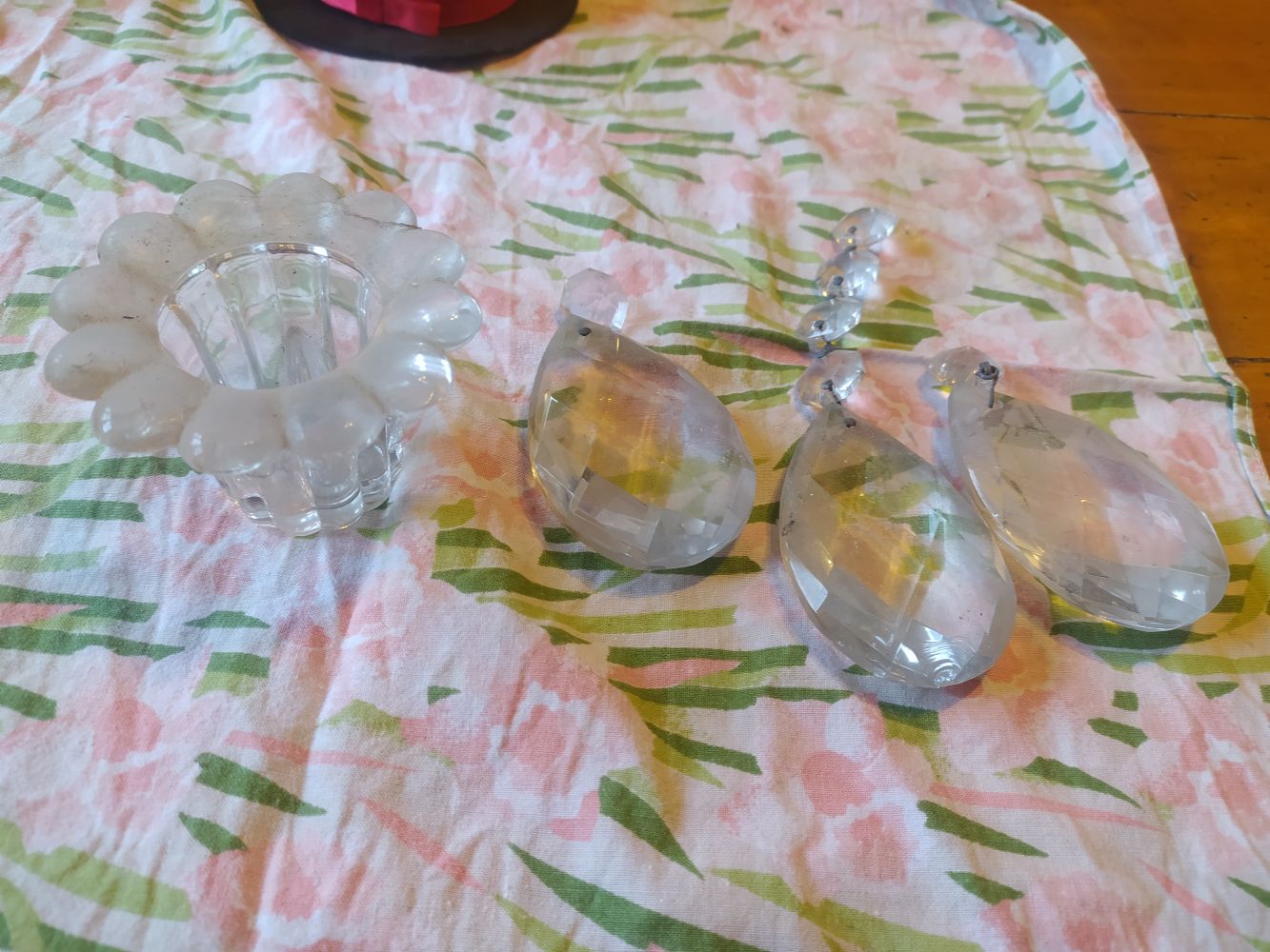 Portacandele delle gocce del lampadario le gocce sono sbeccate e il portacandele è alto 5 cm da pulire