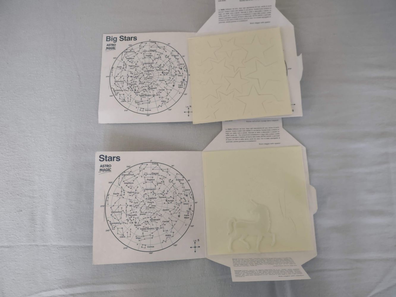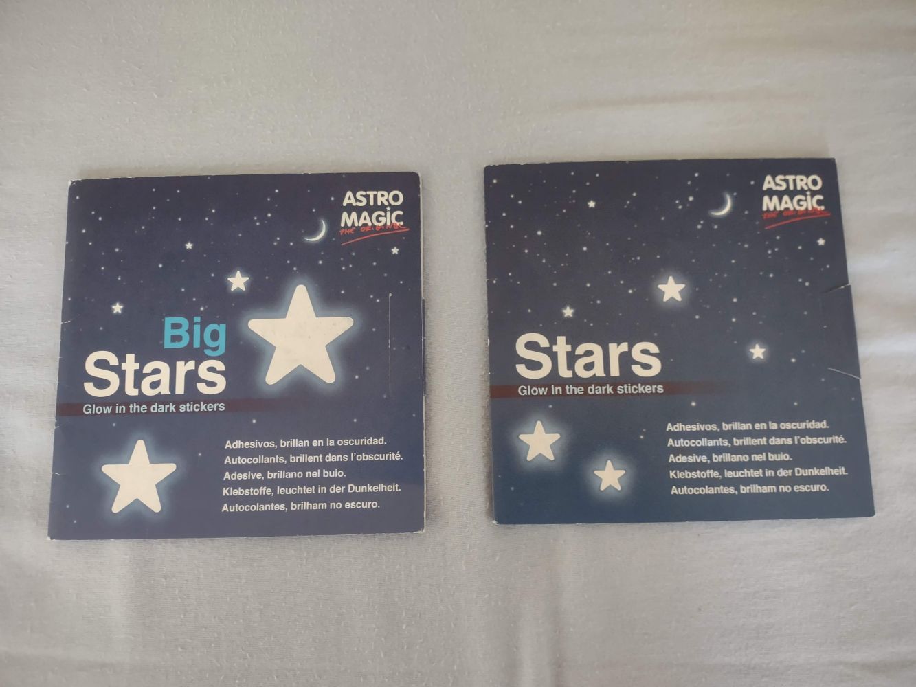 Descrizione:2 confezioni nuove di adesivi fluorescenti a forma di stelle di varie dimensioni. Le ho provate e funzionano. Non divido