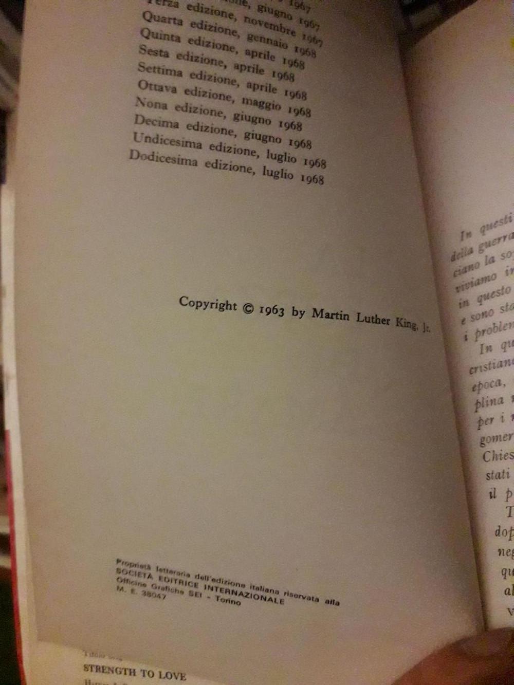 Descrizione:La forza di amare, di Martin Luther King, S.E.I. 1968. È usatello, quindi ha qualche macchia e ingiallimento, ma è integro e leggibile.