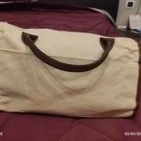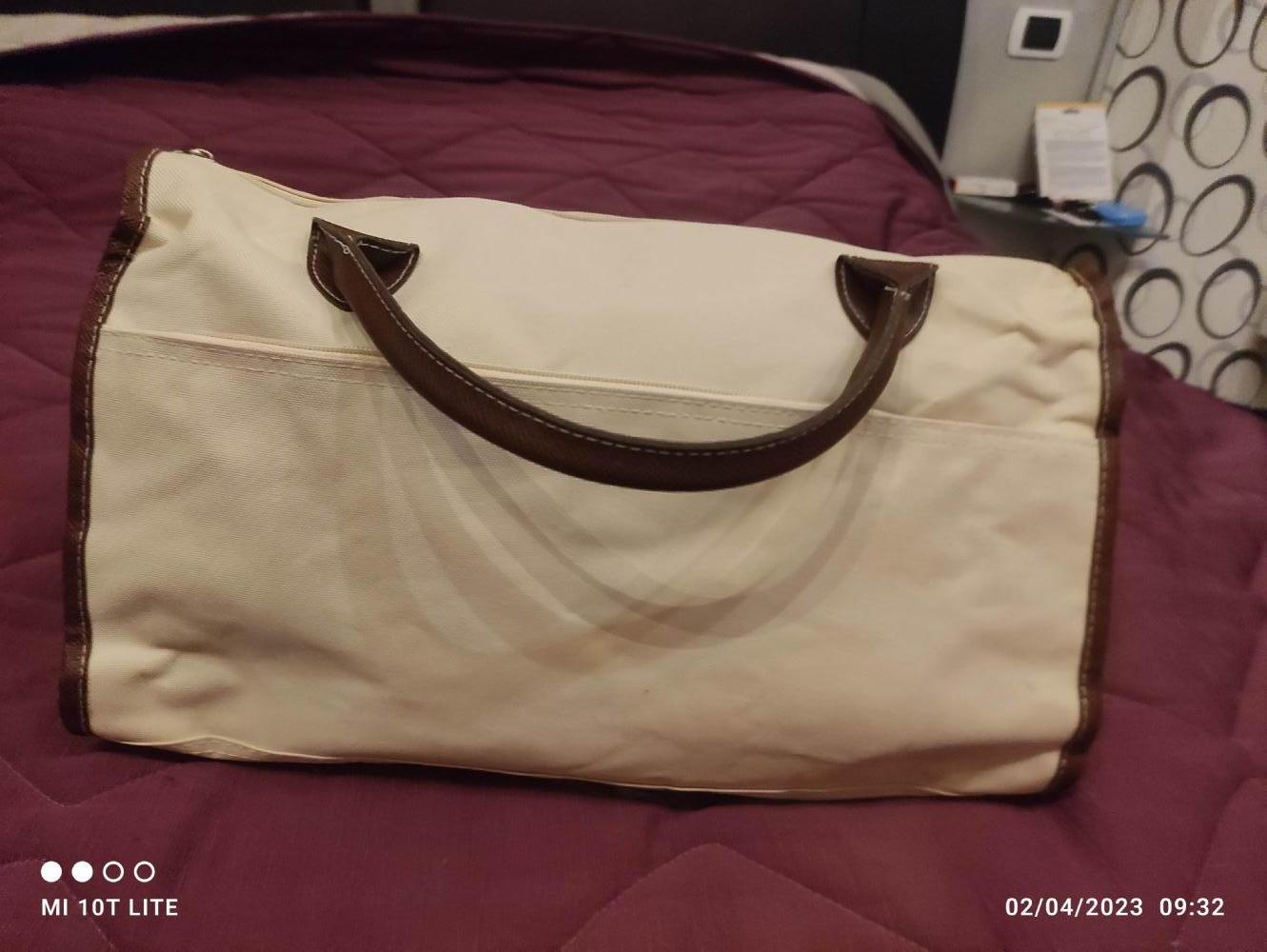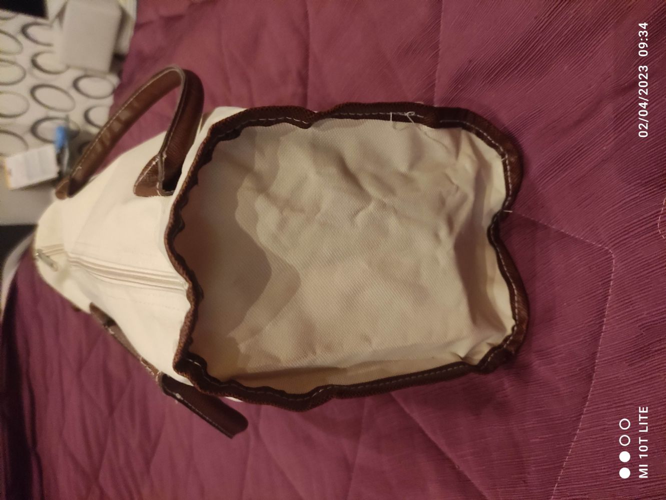 In tela e con manici credo in finta pelle una tasca lunga quanto la borsa sul davanti è una stretta misura 40 x 22.