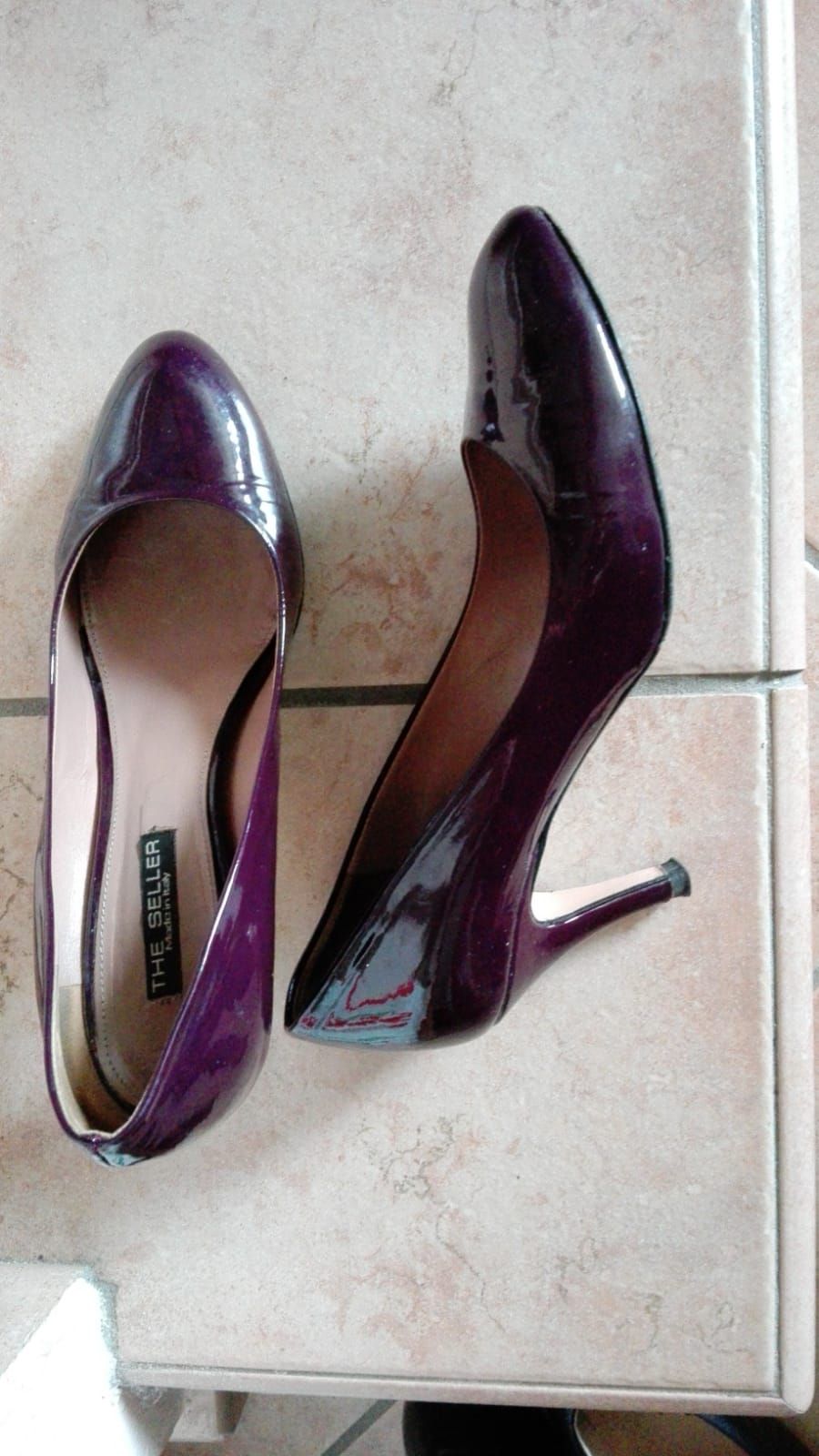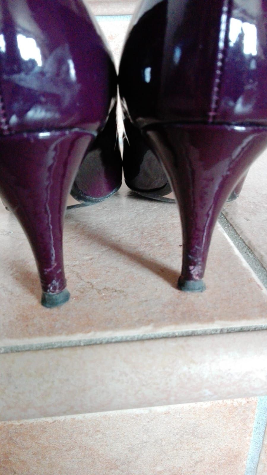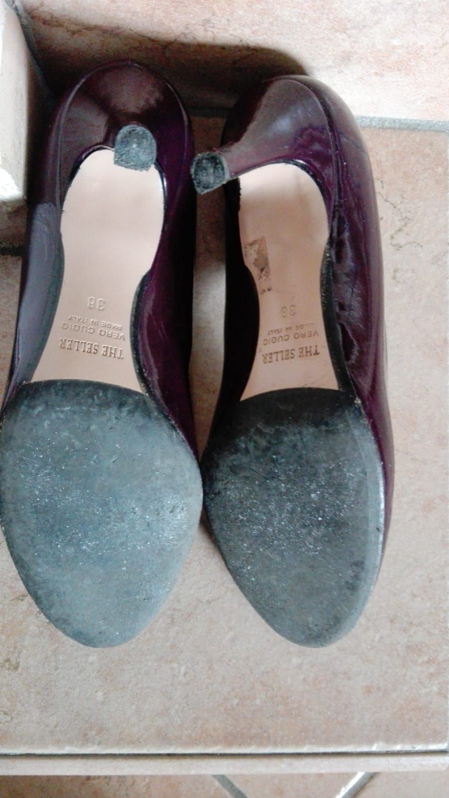 Descrizione:in pelle,vernice bordeaux,ho scritto usato tanto solo perchè il tacchettino in fondo è leggermente rovinato,ma camminando ne si vede e ne pregiudica la camminata ,tacco 7,suola antiscivolo