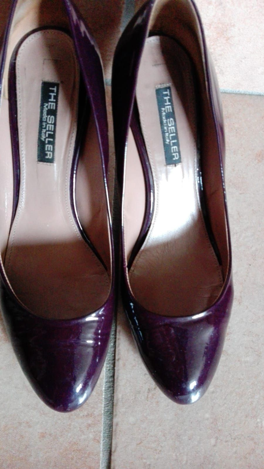 in pelle,vernice bordeaux,ho scritto usato tanto solo perchè il tacchettino in fondo è leggermente rovinato,ma camminando ne si vede e ne pregiudica la camminata ,tacco 7,suola antiscivolo