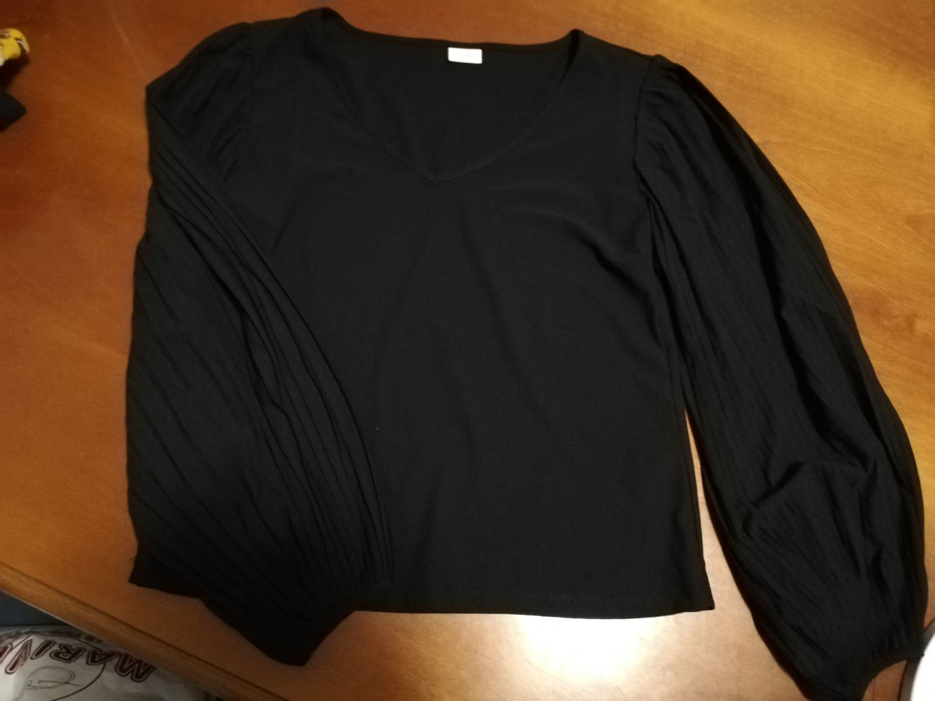 Descrizione:Maglia nera a maniche lunghe plissettate a palloncino. In poliestere. Taglia S.