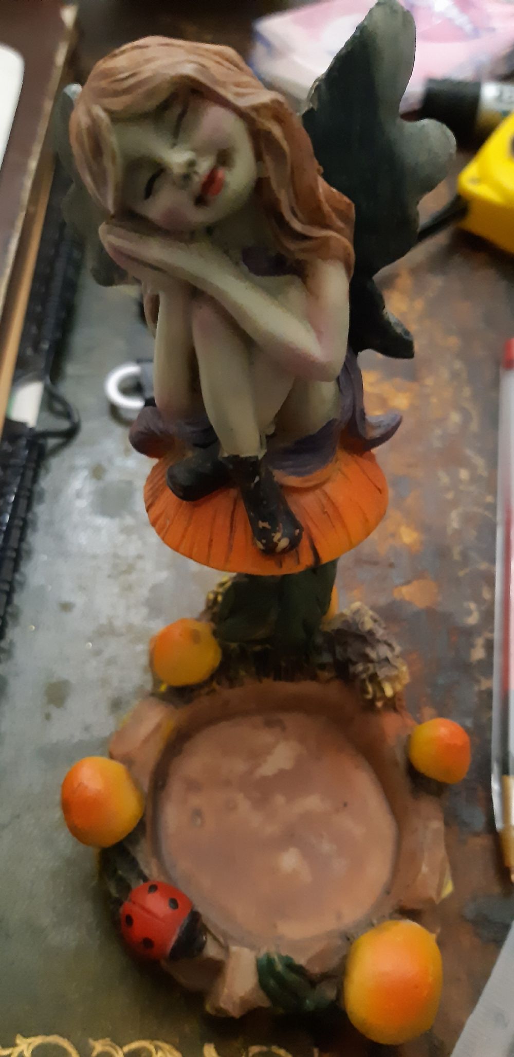 Descrizione:Altezza 13 cm. Forse in terracotta. Con piccolo vano portaoggetti piccoli.