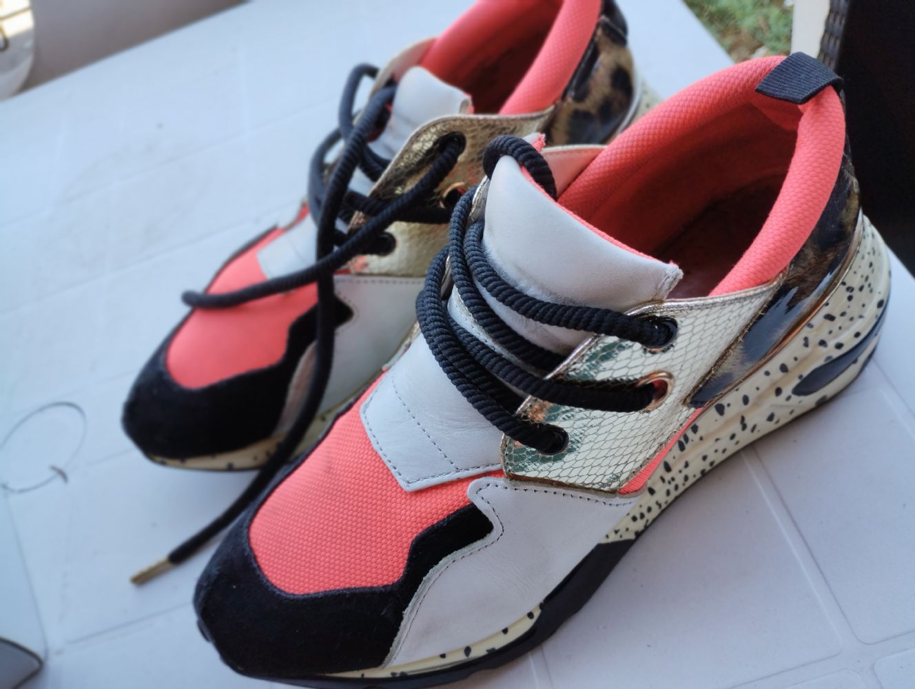 Descrizione:Scarpe da ginnastica donna con lacci numero 38. Usate, un po' rovinate in punta
