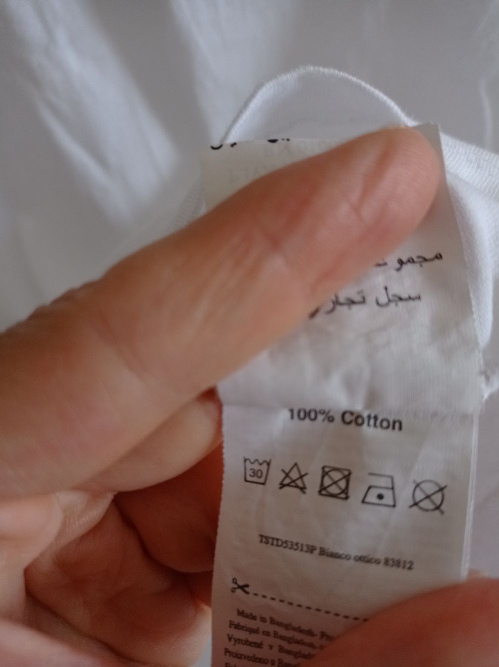 100% cotone, indossata qualche volta ma non vedo difetti