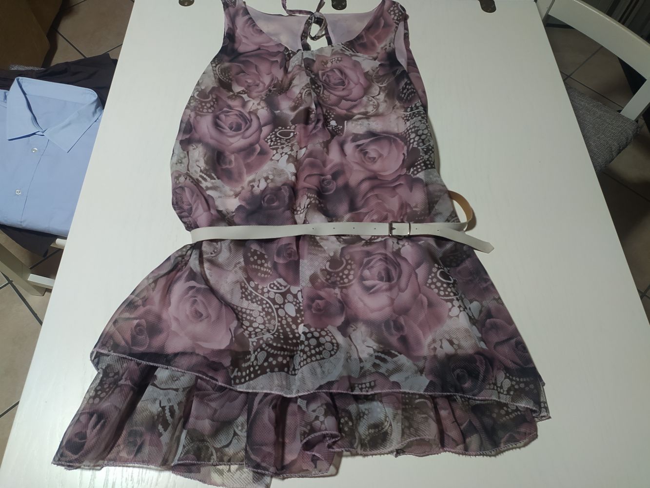 Abito o canotta lunga foderato con cintura, 95% poliestere, 5% elastan, ascelle cm 43, lunghezza cm 79.