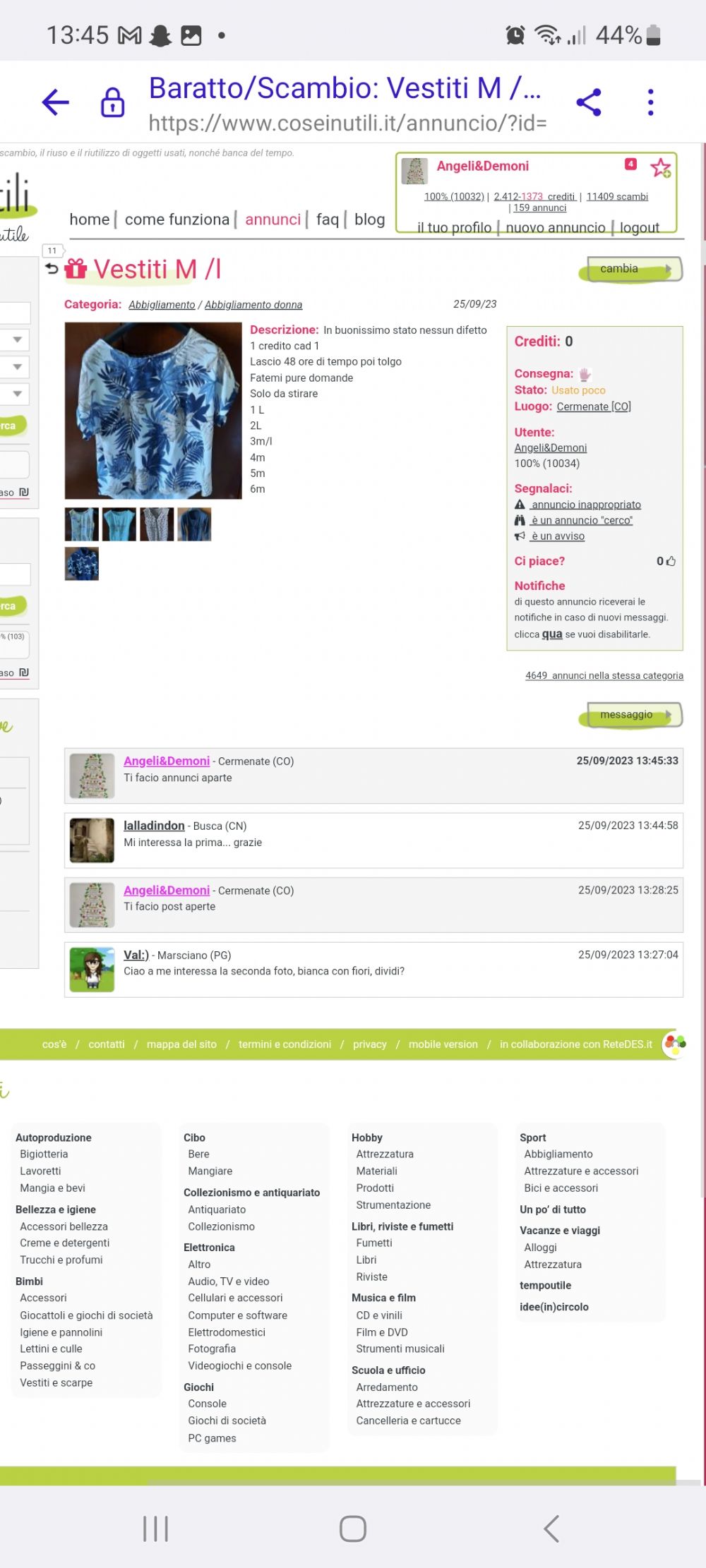 di questo annuncio NON riceverai le notifiche in caso di nuovi messaggi.