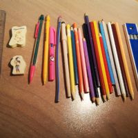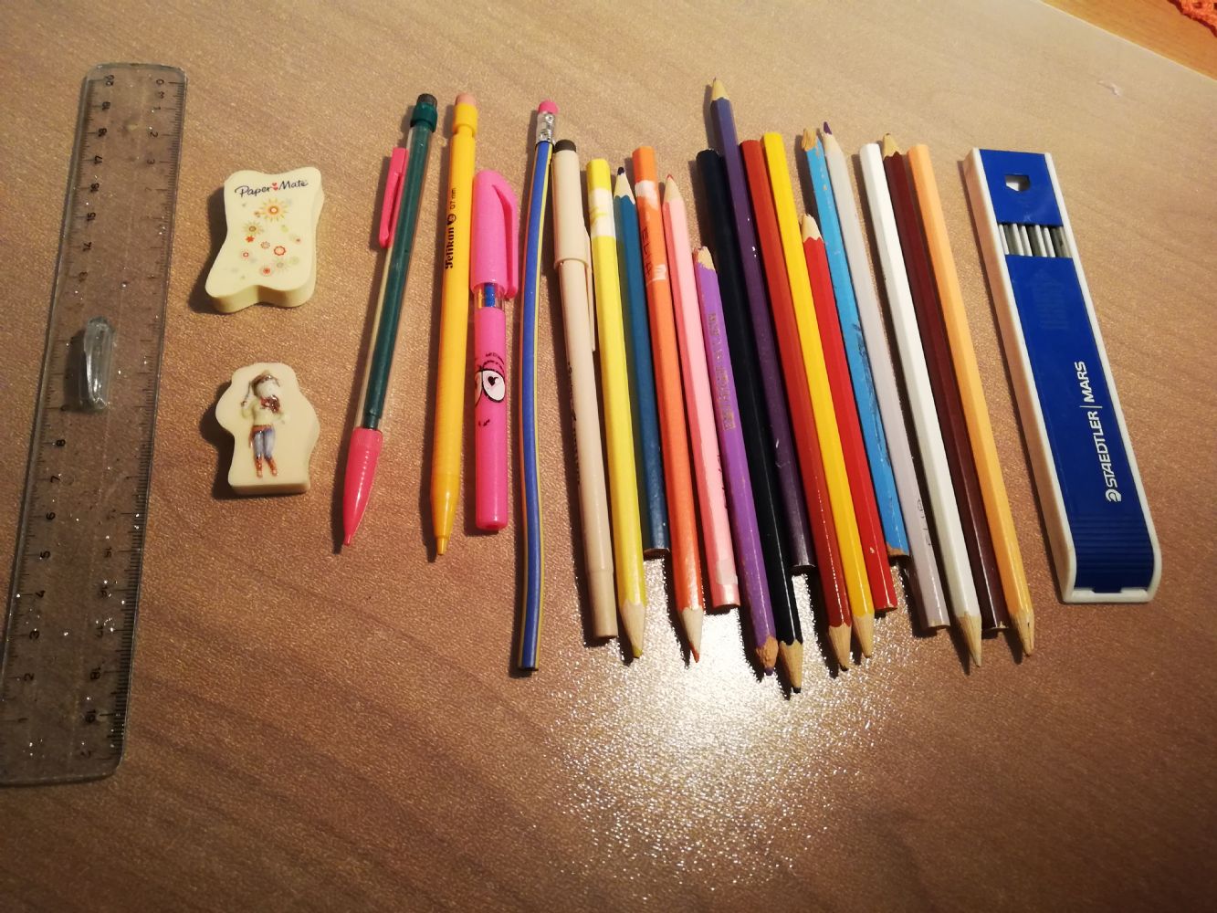 Descrizione:Lotto 2 gomme da cancellare, colori a matita, penna stabilo con faccina (inchiostro blu), penna paper mate cancellabile inchiostro nero, 2 matite con mine, confezione di mine più grandi staedtler. Lotto Indivisibile.