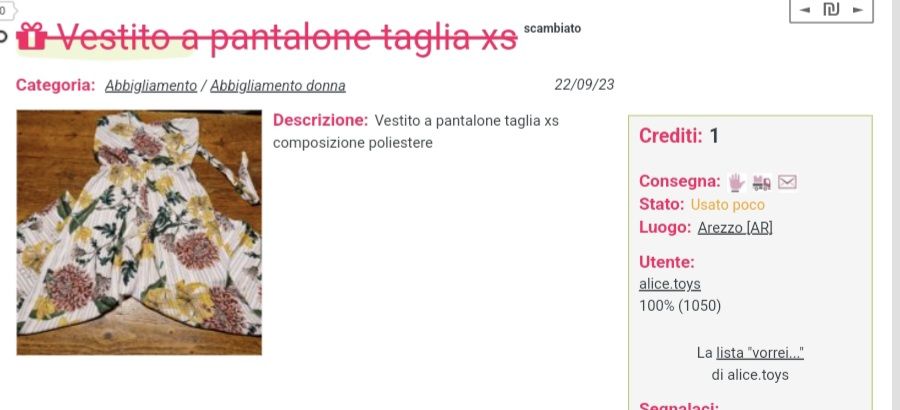 Il sito di baratto online asincrono per lo scambio, il riuso e il riutilizzo di oggetti usati, nonché banca del tempo.
