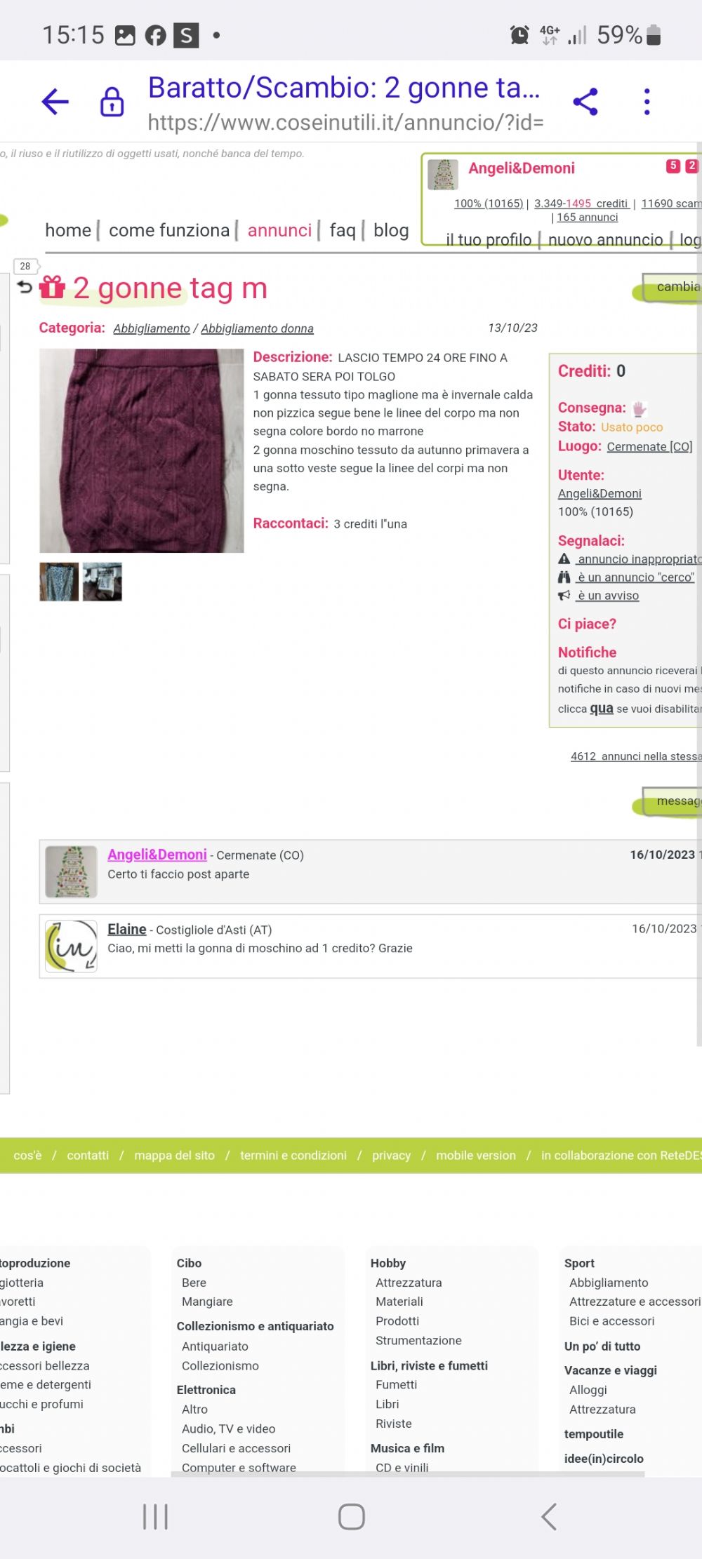 Il sito di baratto online asincrono per lo scambio, il riuso e il riutilizzo di oggetti usati, nonché banca del tempo.