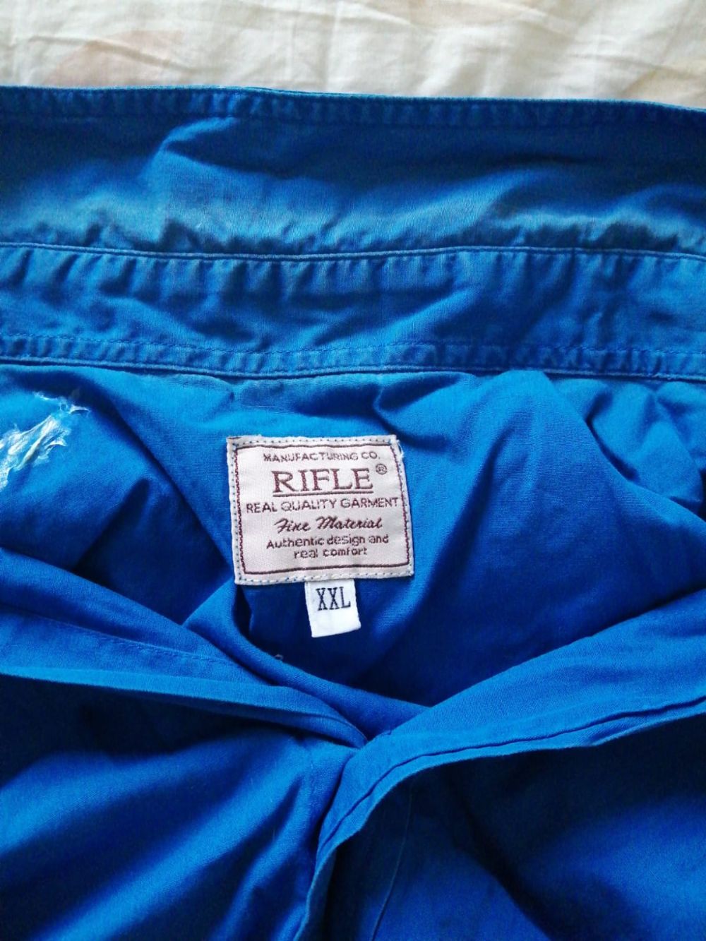 Descrizione:Camicia uomo marca rifle taglia XXL i blu non è fedele È più chiaro. Spalle 54 ascelle 65 lunga 70. Il collo è leggermente scolorito. All'interno c'è qualcosa che sembra colla (seconda foto)