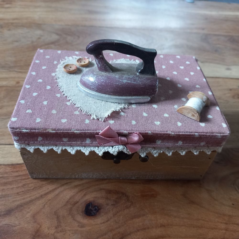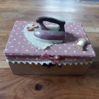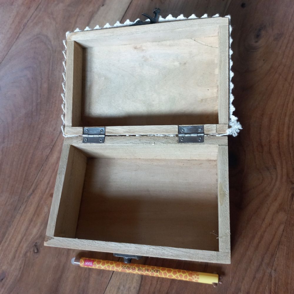 Con la parte superiore ricoperta di stoffa e decorata, è molto carina. Ha un gancio di chiusura in metallo.