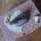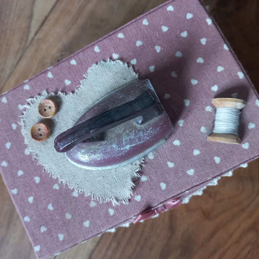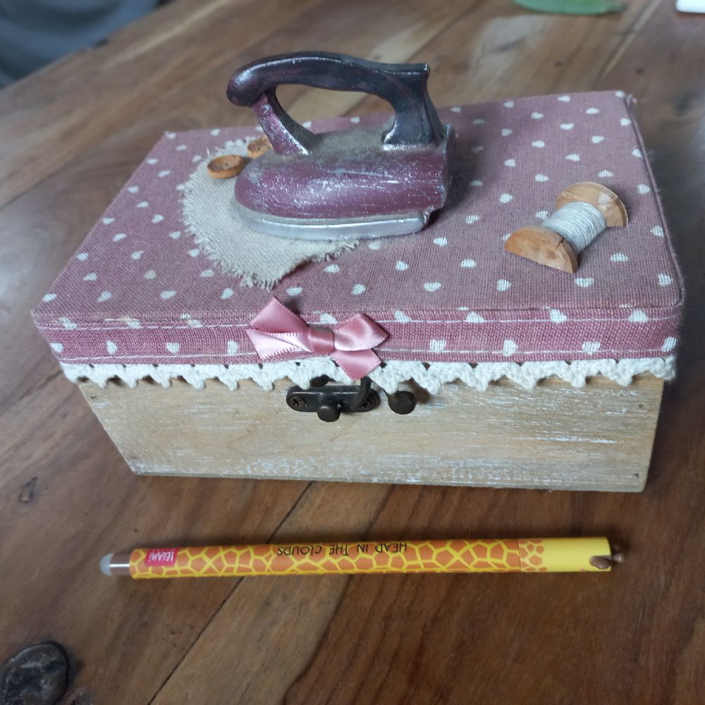 Con la parte superiore ricoperta di stoffa e decorata, è molto carina.