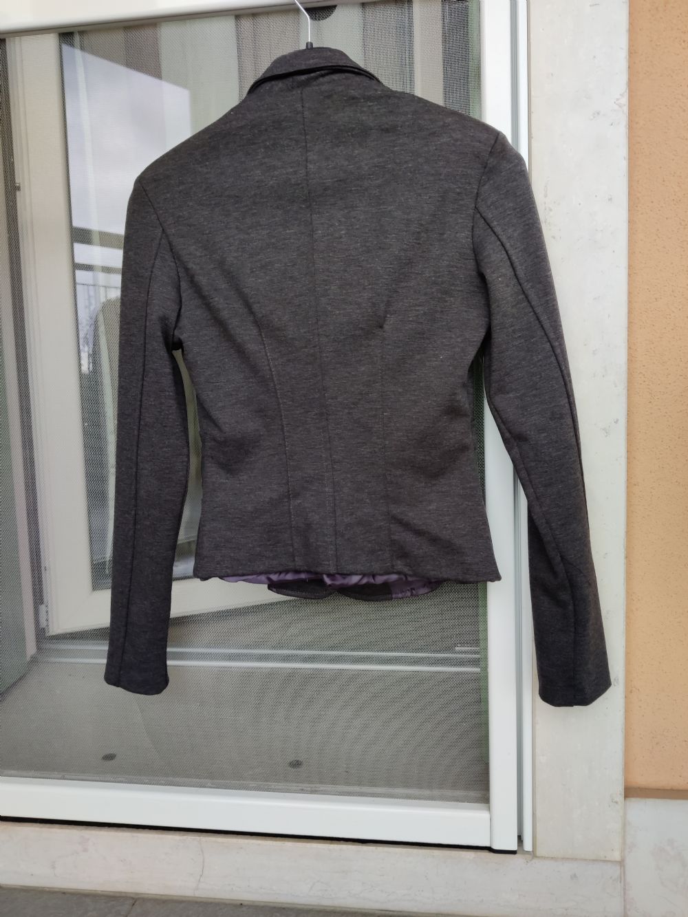 Descrizione:Giacca foderata(Grigia_nn violacea come in foto ).Giro vita 34,lunga 56 cm.