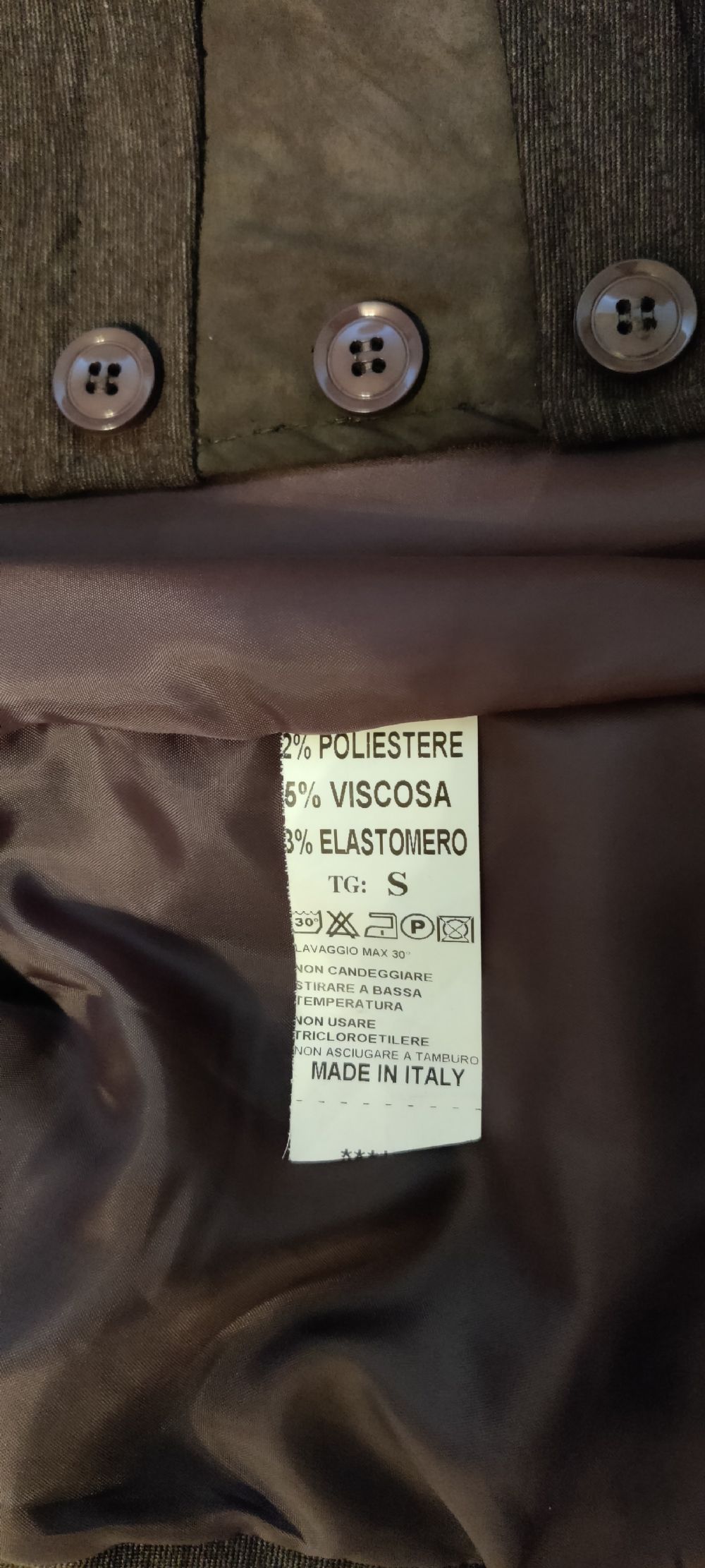 Raccontaci:Usata un paio di volte ,ma ha perso le parti in finta pelle..da qui ,alcune imperfezioni zona tasca gonna.