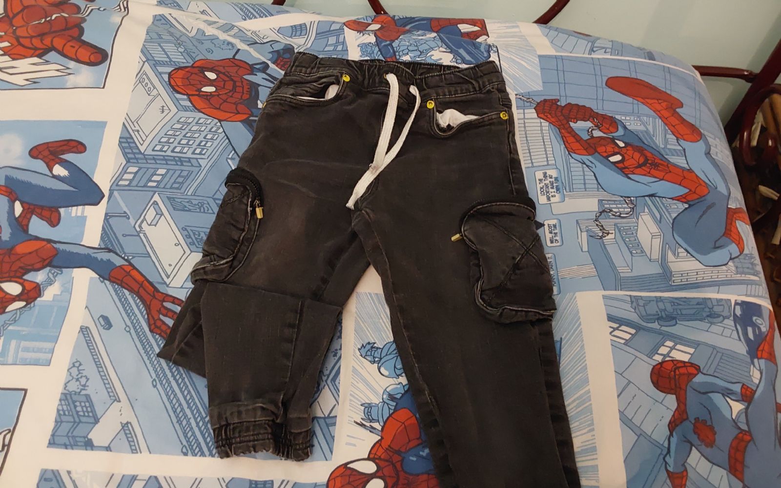 Descrizione:Jeans neri cotone Original Marines con tasche laterali, 7-8 anni. Elastico in fondo alla caviglia