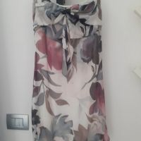 Descrizione:Abito elegante in chiffon stampa a fiori dai colori tenui, senza spalline, fodera interna taglia S