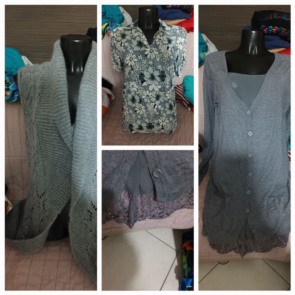 Un cardigan di lana L ovviesse Un vestito morbidissimo di maglina con pizzo in basso Una t shirt poliestere.