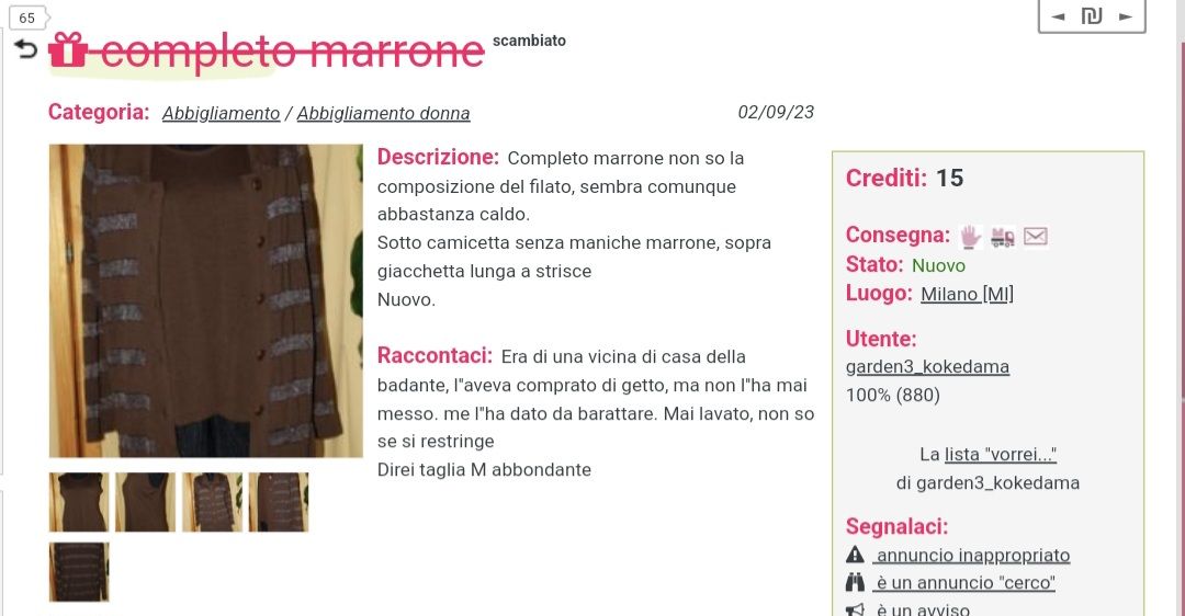 Il sito di baratto online asincrono per lo scambio, il riuso e il riutilizzo di oggetti usati, nonché banca del tempo.