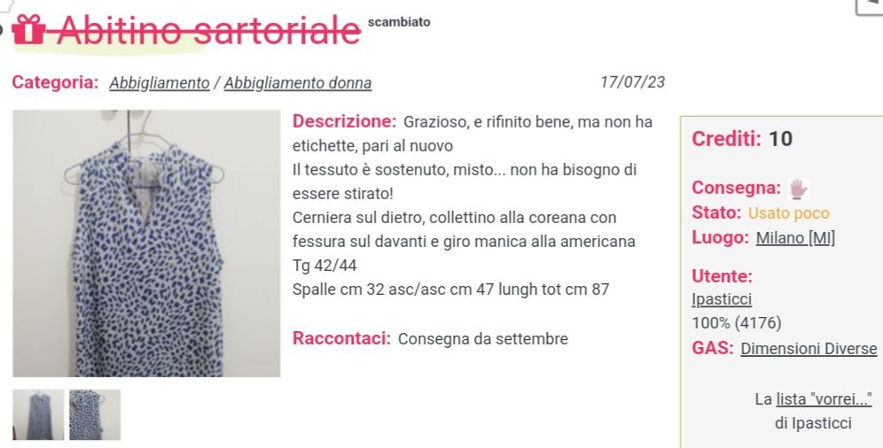 Il sito di baratto online asincrono per lo scambio, il riuso e il riutilizzo di oggetti usati, nonché banca del tempo.