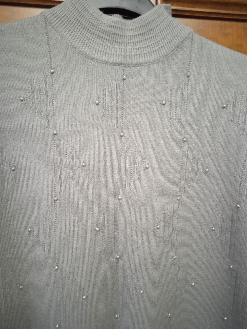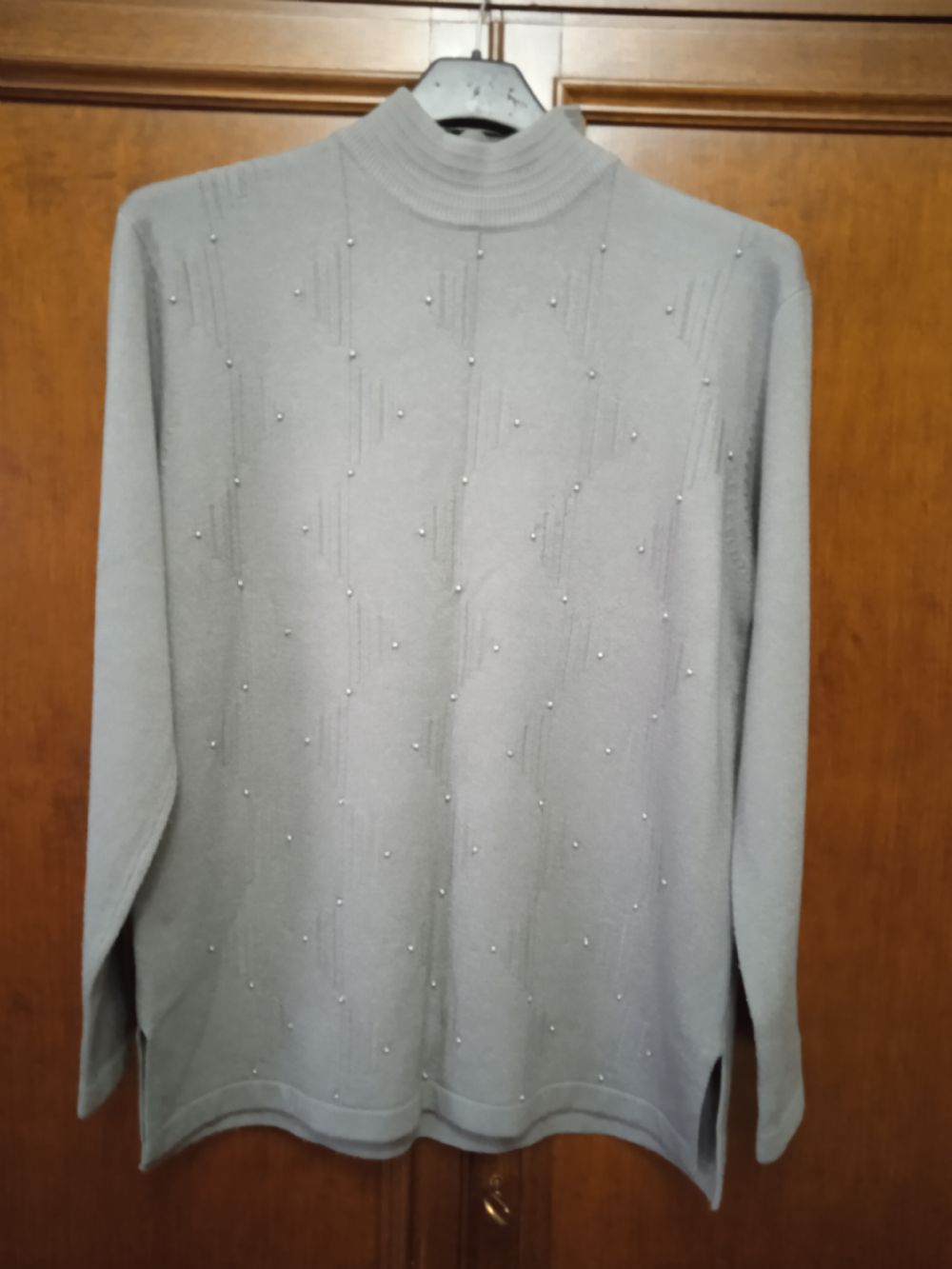 Descrizione:Maglietta donna lana merinos 60% grigia con perline tg 46
