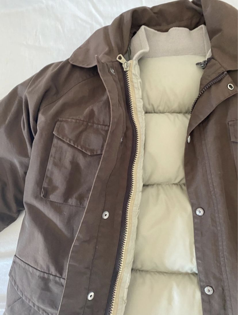 Perfetto, lavato e pulito. Piumino in vera piuma, esterno in materiale sintetico antivento
