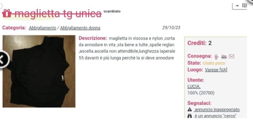 Il sito di baratto online asincrono per lo scambio, il riuso e il riutilizzo di oggetti usati, nonché banca del tempo.