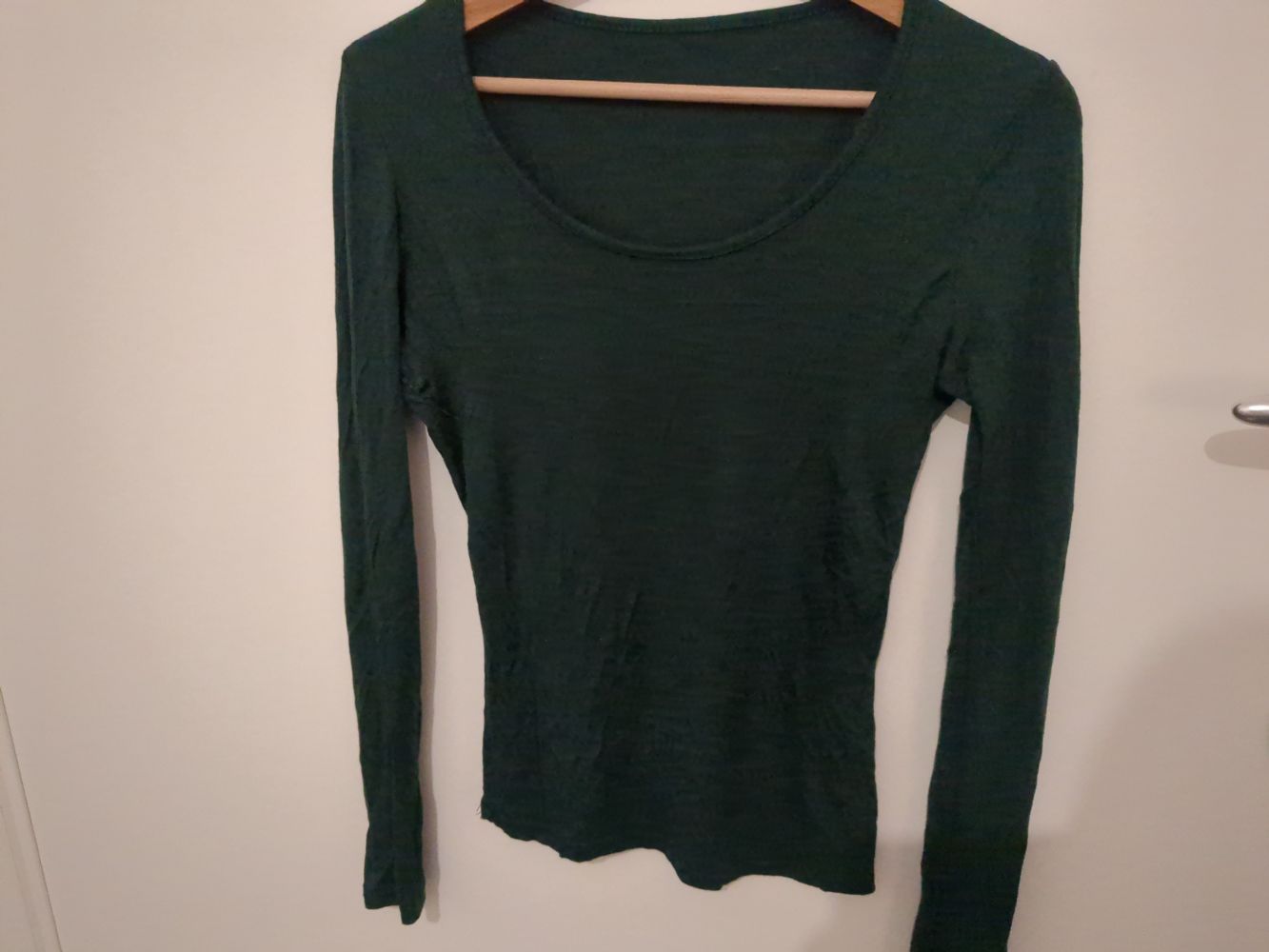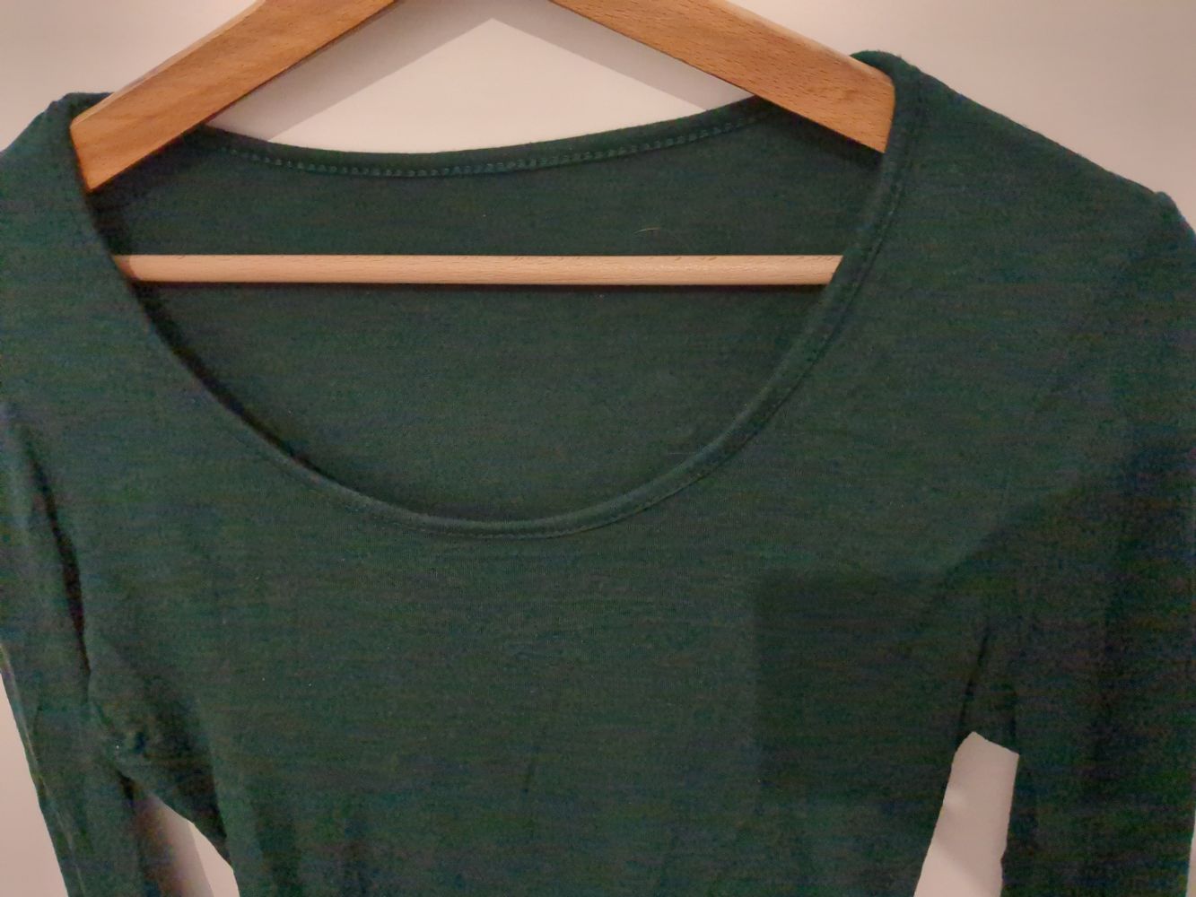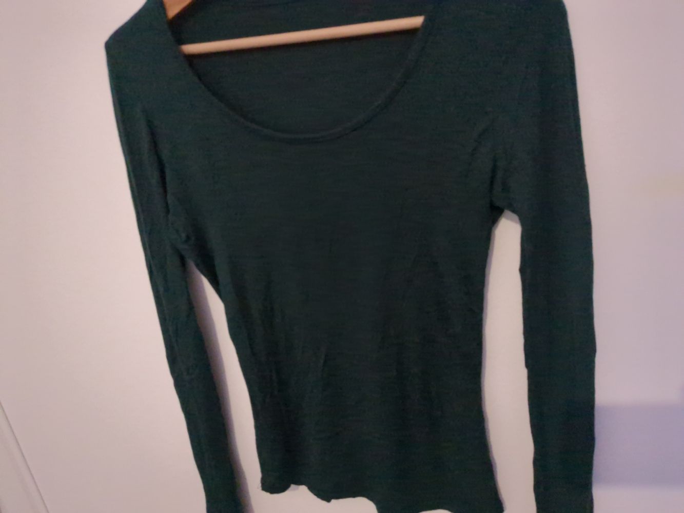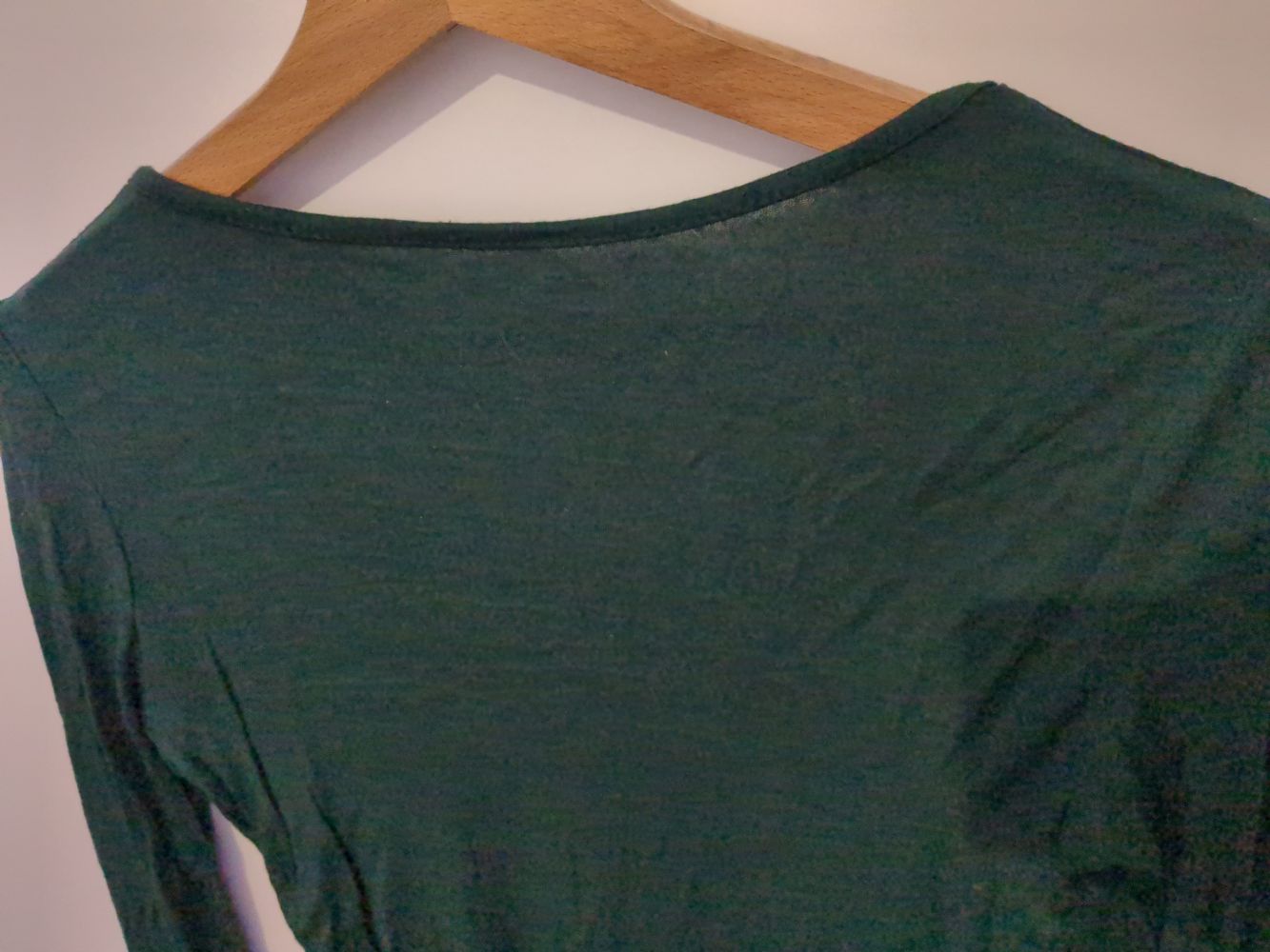 Descrizione:Maglietta donna, senza lode e senza infamia, non ha difetti; colore verde bottiglia , scuro; consiglio per una tg M , ma è molto morbida ed è elasticizzata; quindi M abbondante